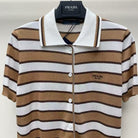 Prada Striped Polo T-shirt White Brown Tencel Cotton