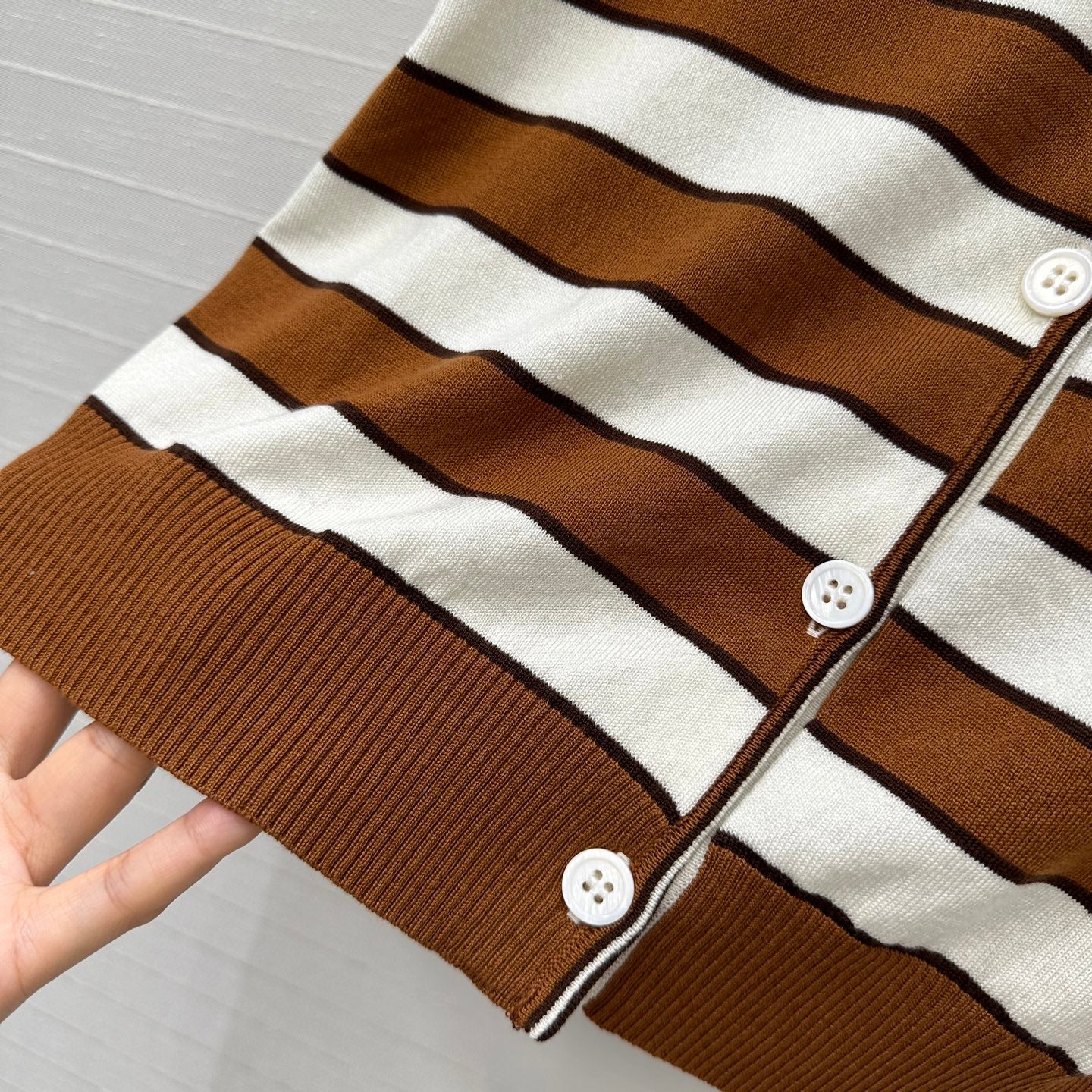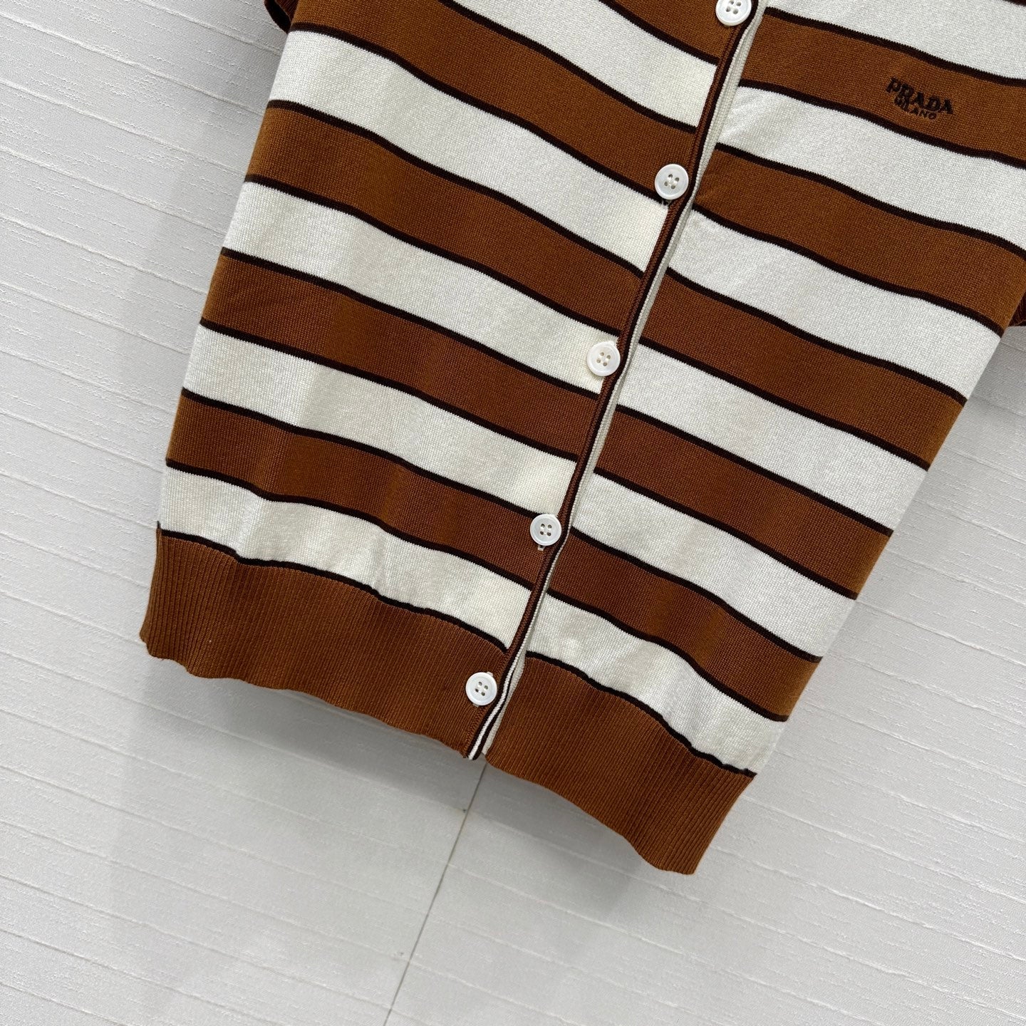 Prada 25 Striped Short-sleeved Knitted Cardigan Brown white Cotton
