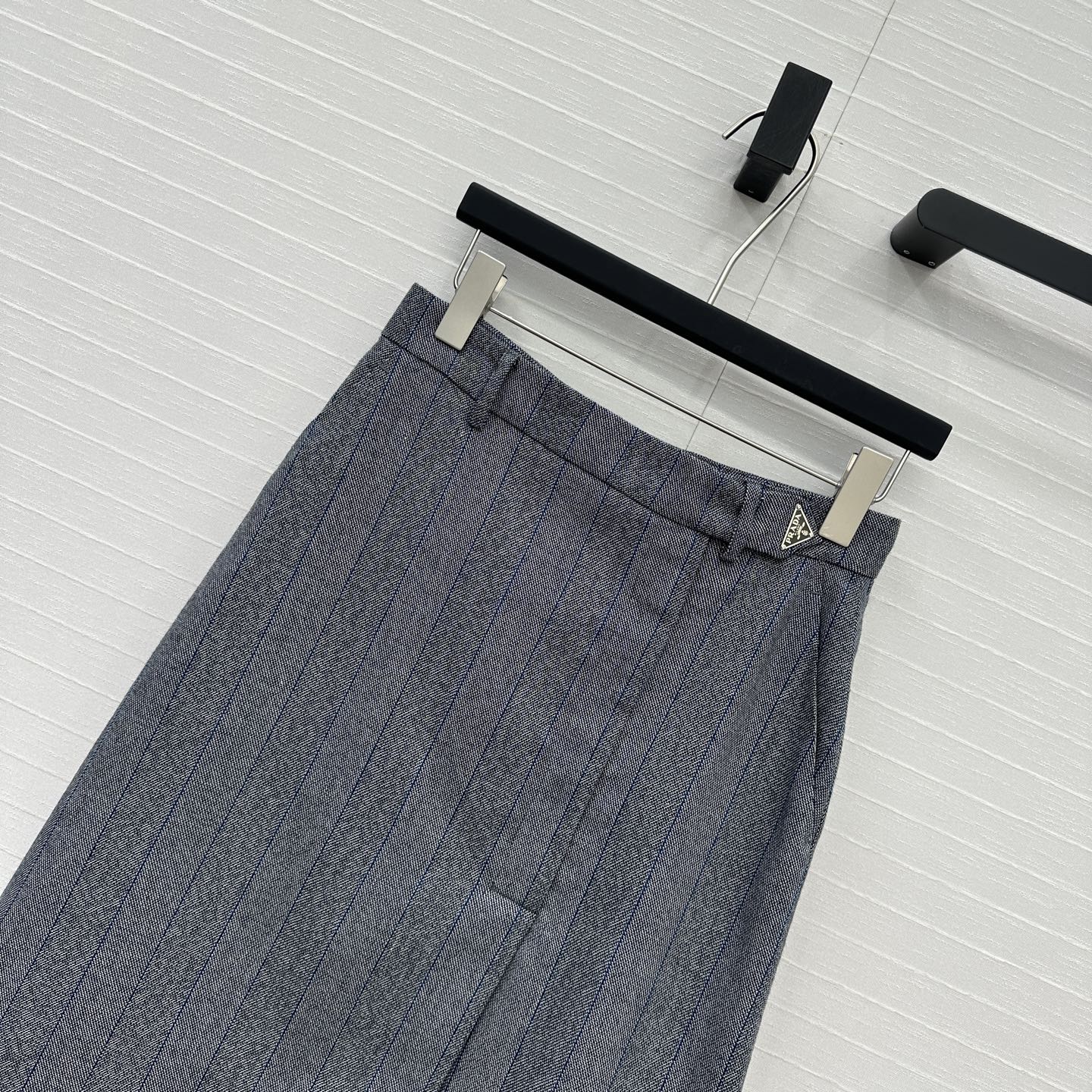 Prada Striped Suit Mid-length Skirt Grey Wool Cotton Polyester
