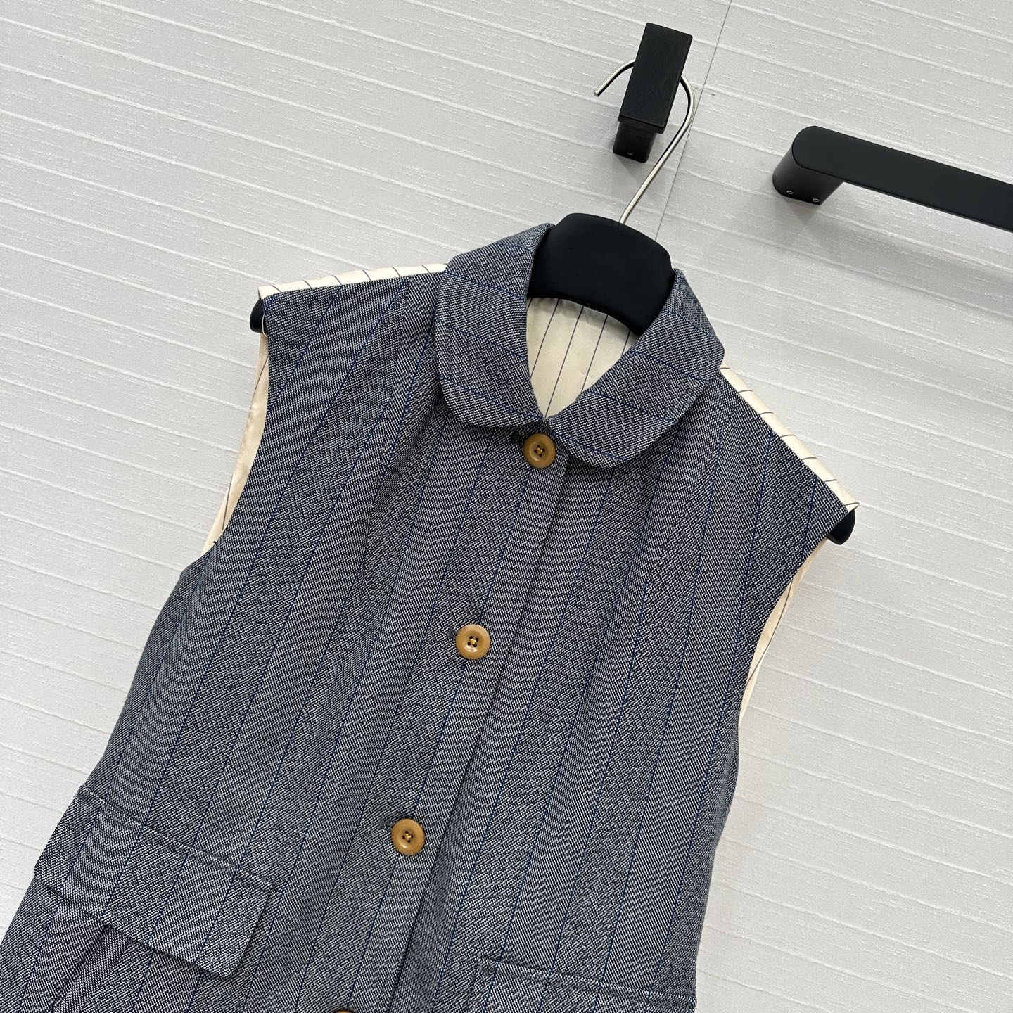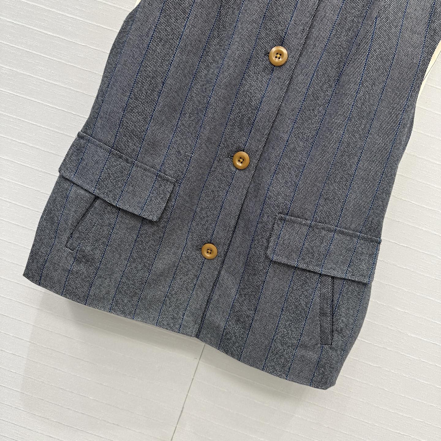 Prada 25 Striped Vest Jacket Grey Wool Cotton Polyester