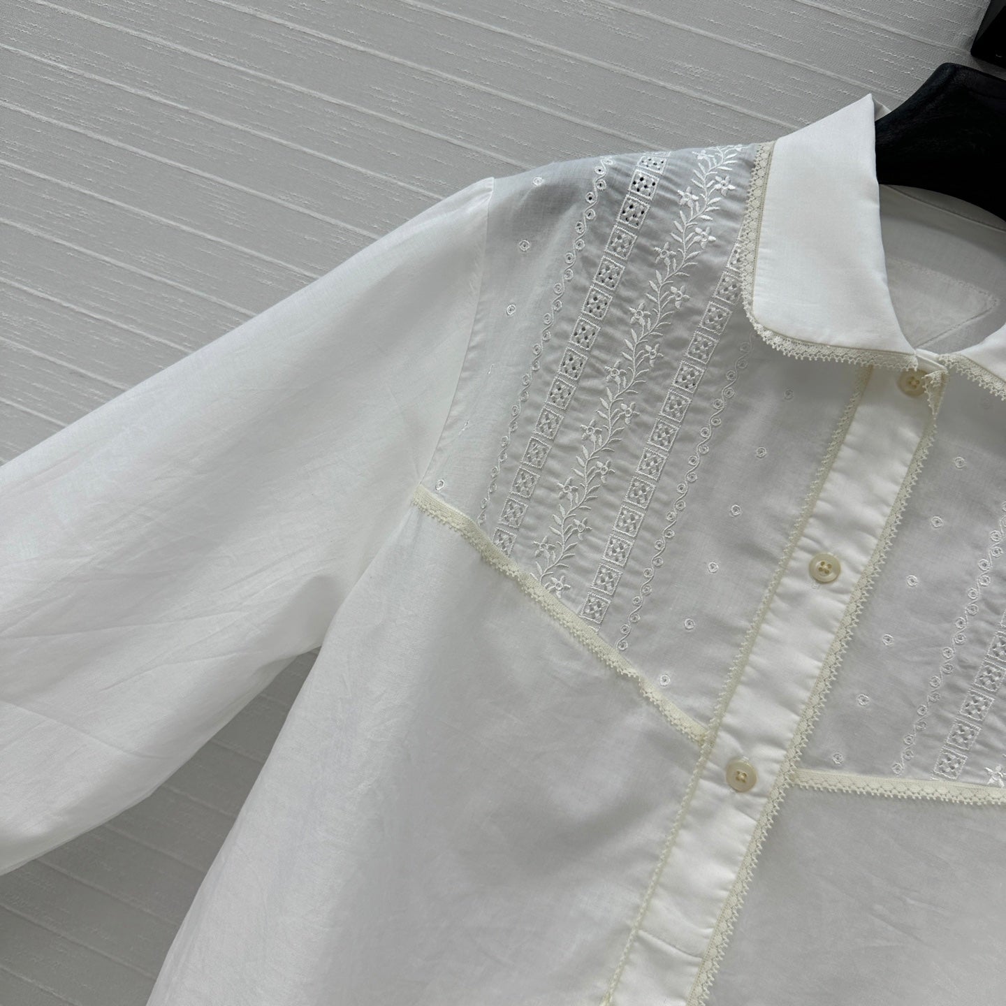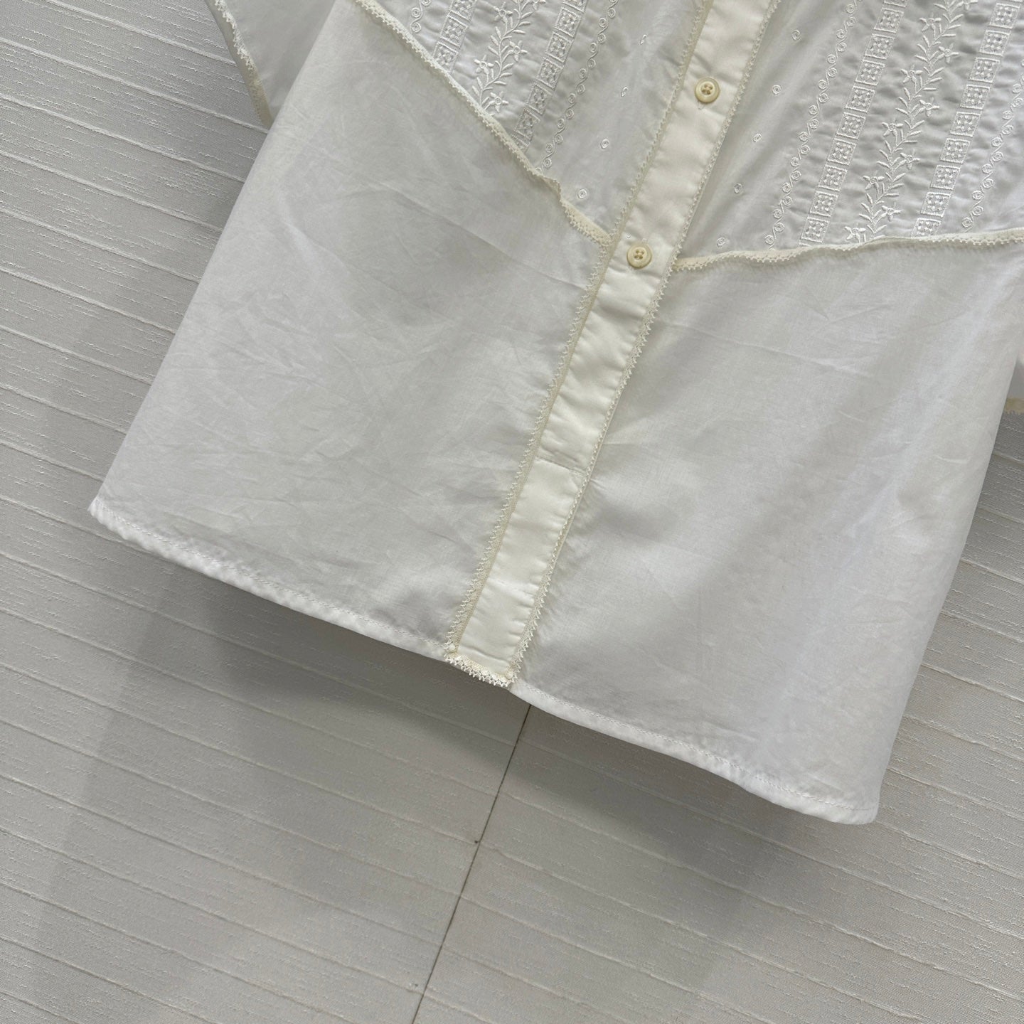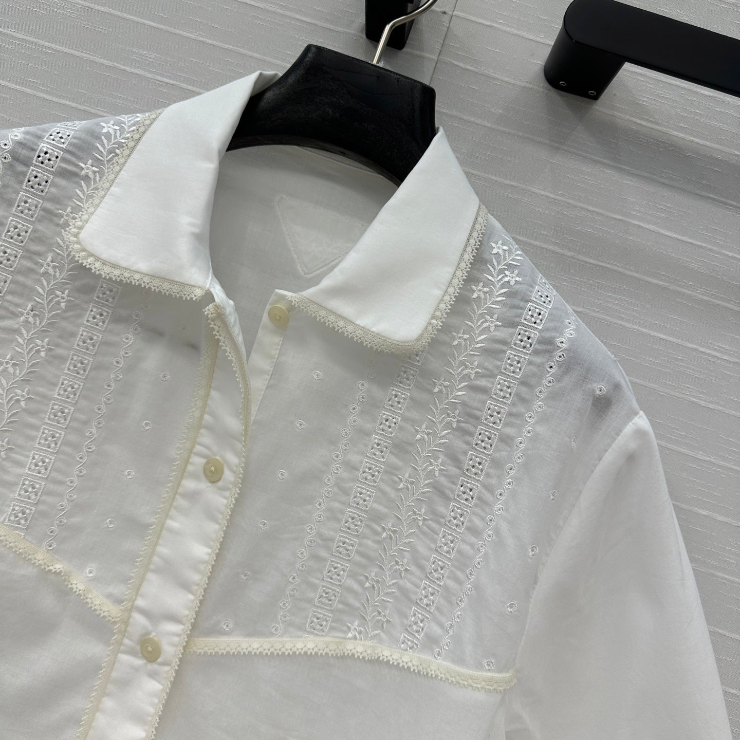 Prada 25 Lace Short-sleeved Shirt White Cotton