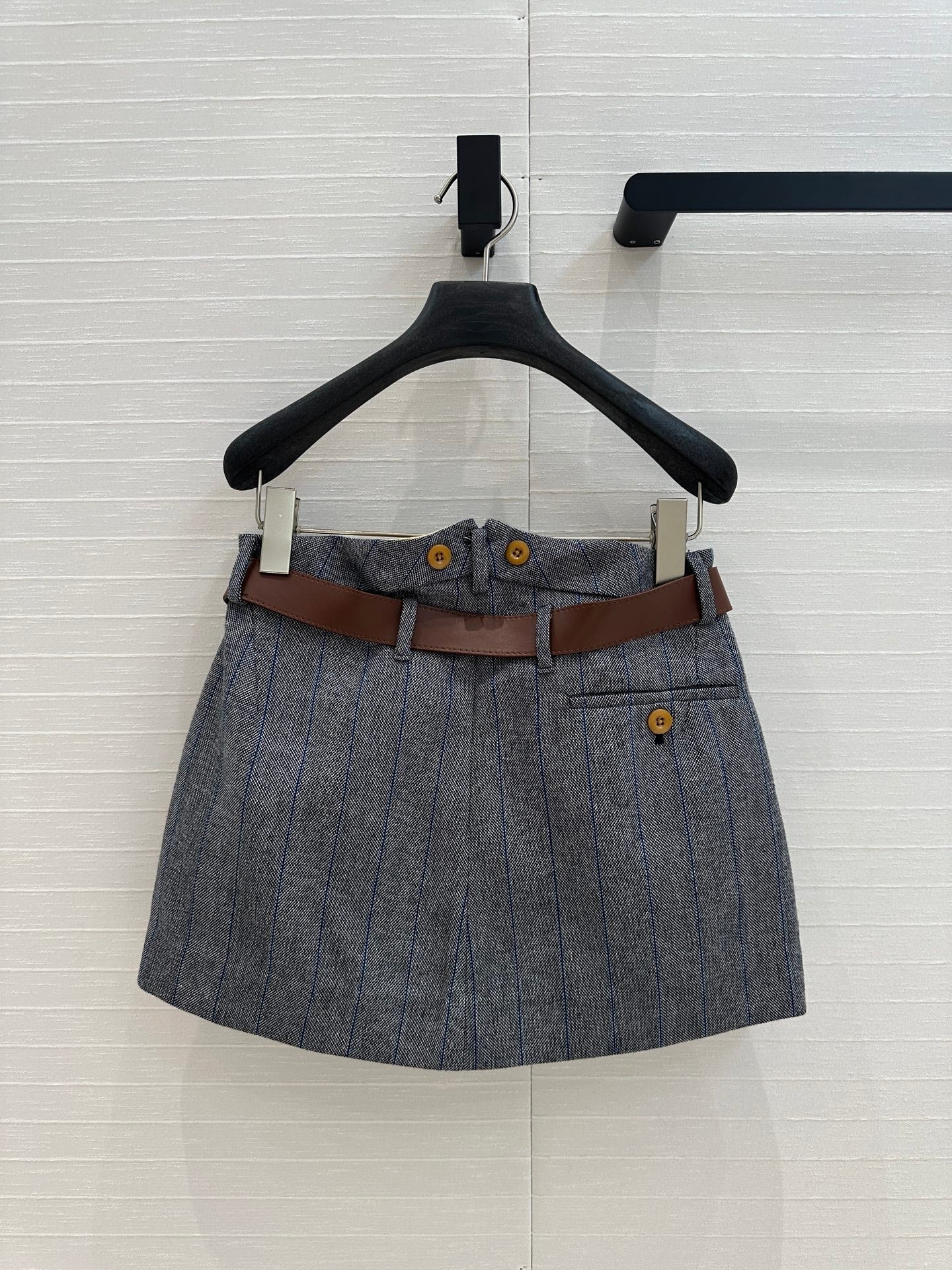 Prada Striped Suit Skirt Gray Wool Polyester