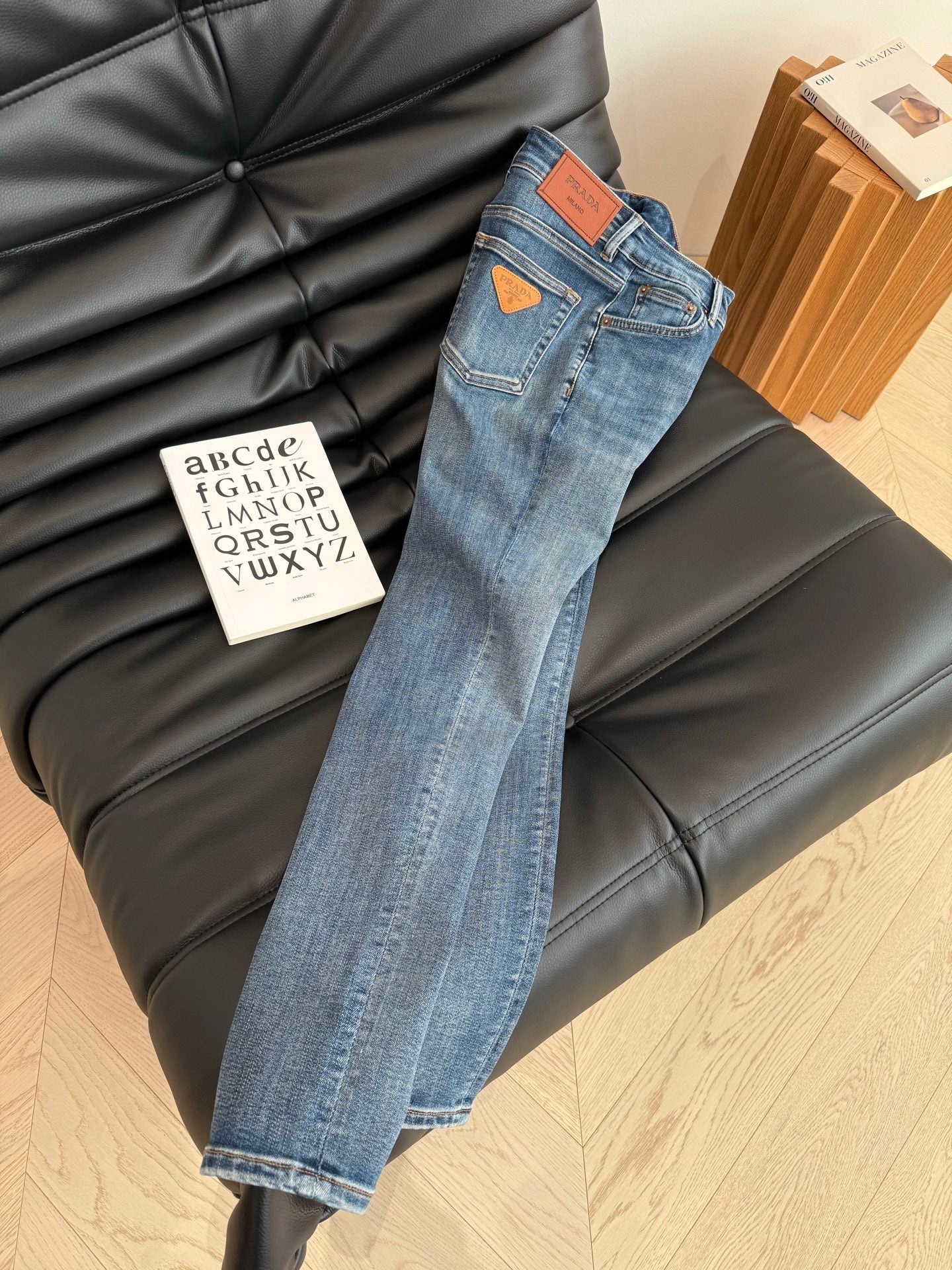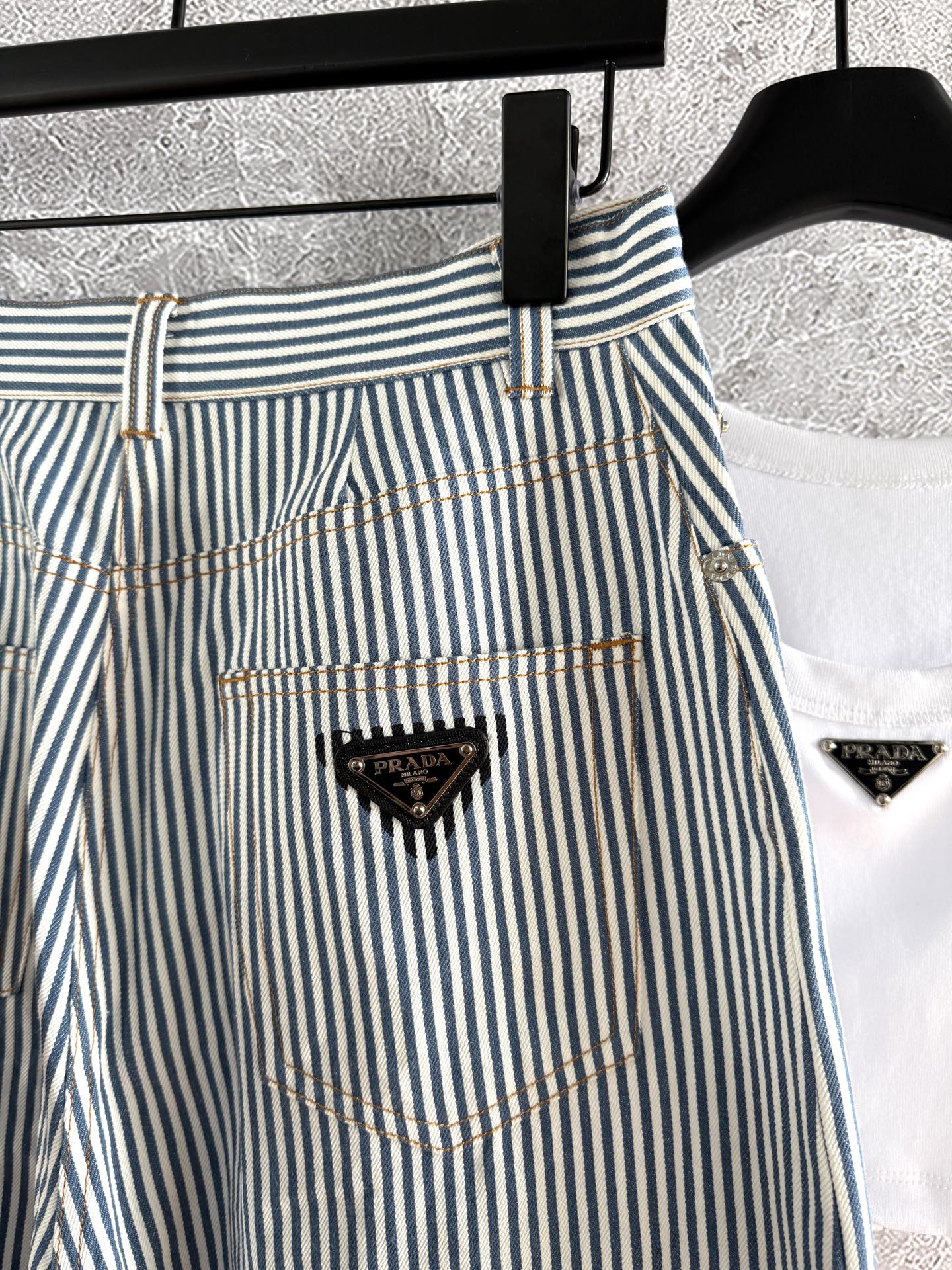 Prada 25 Triangle Straight Denim Pants with belt Cotton 210377