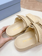 Pra Double Strap Quilted Slide 20 Beige Calfskin