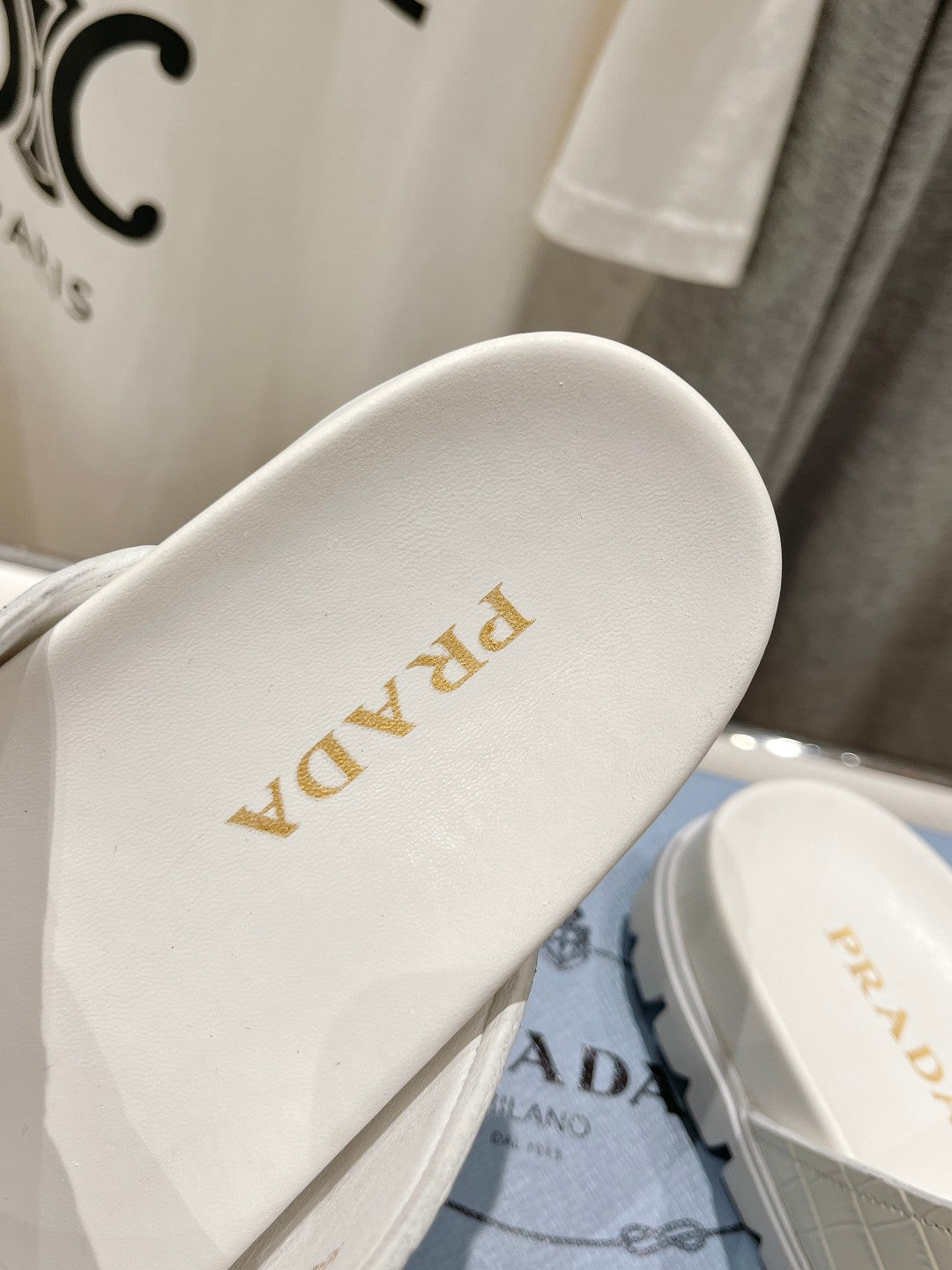 PRA STRAP SLIDES SANDALS WHITE CALFSKIN