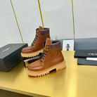 LACE-UP ANKLE BOOTS IN COGNAC CALFSKIN