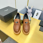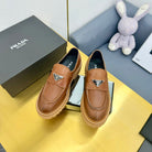 LOAFER WITH TRIANGLE LOGO IN COGNAC CALFSKIN