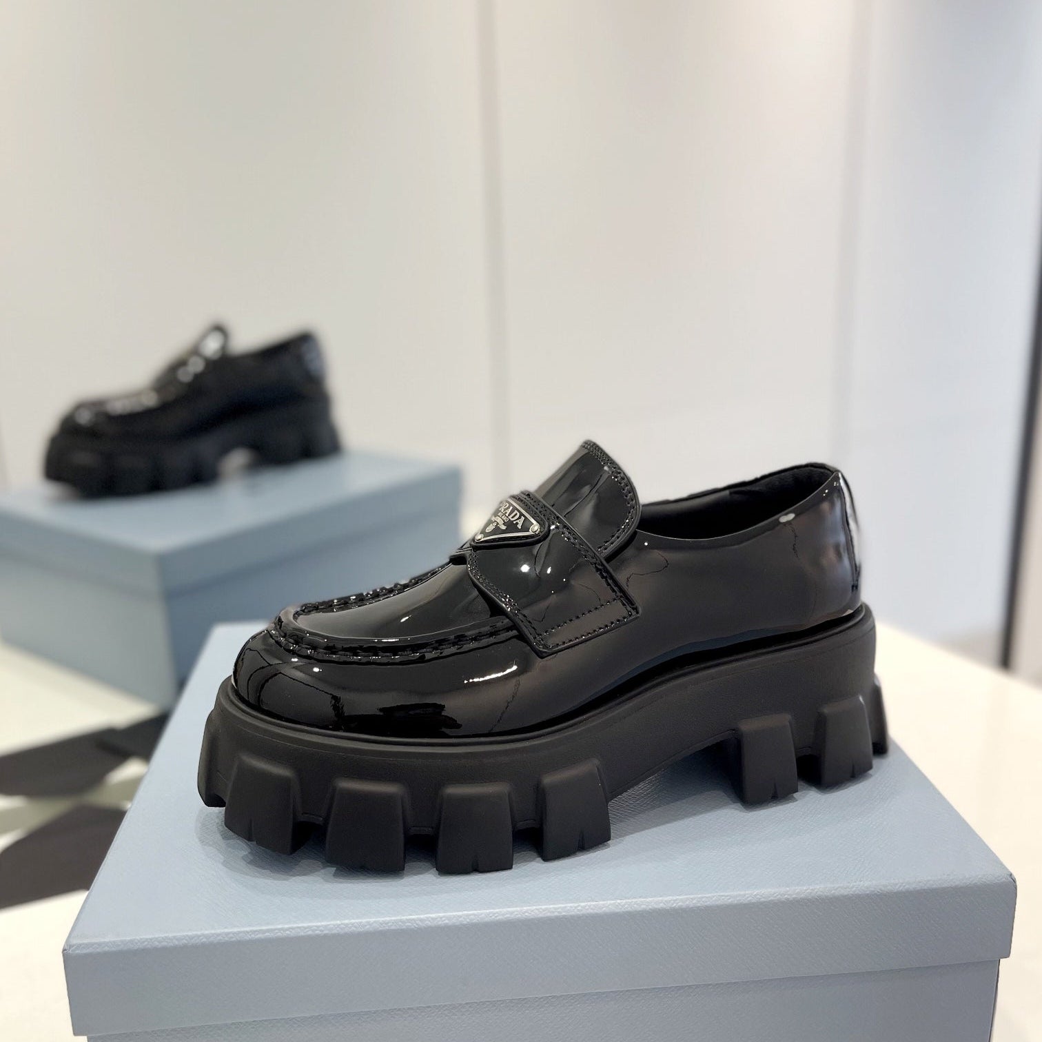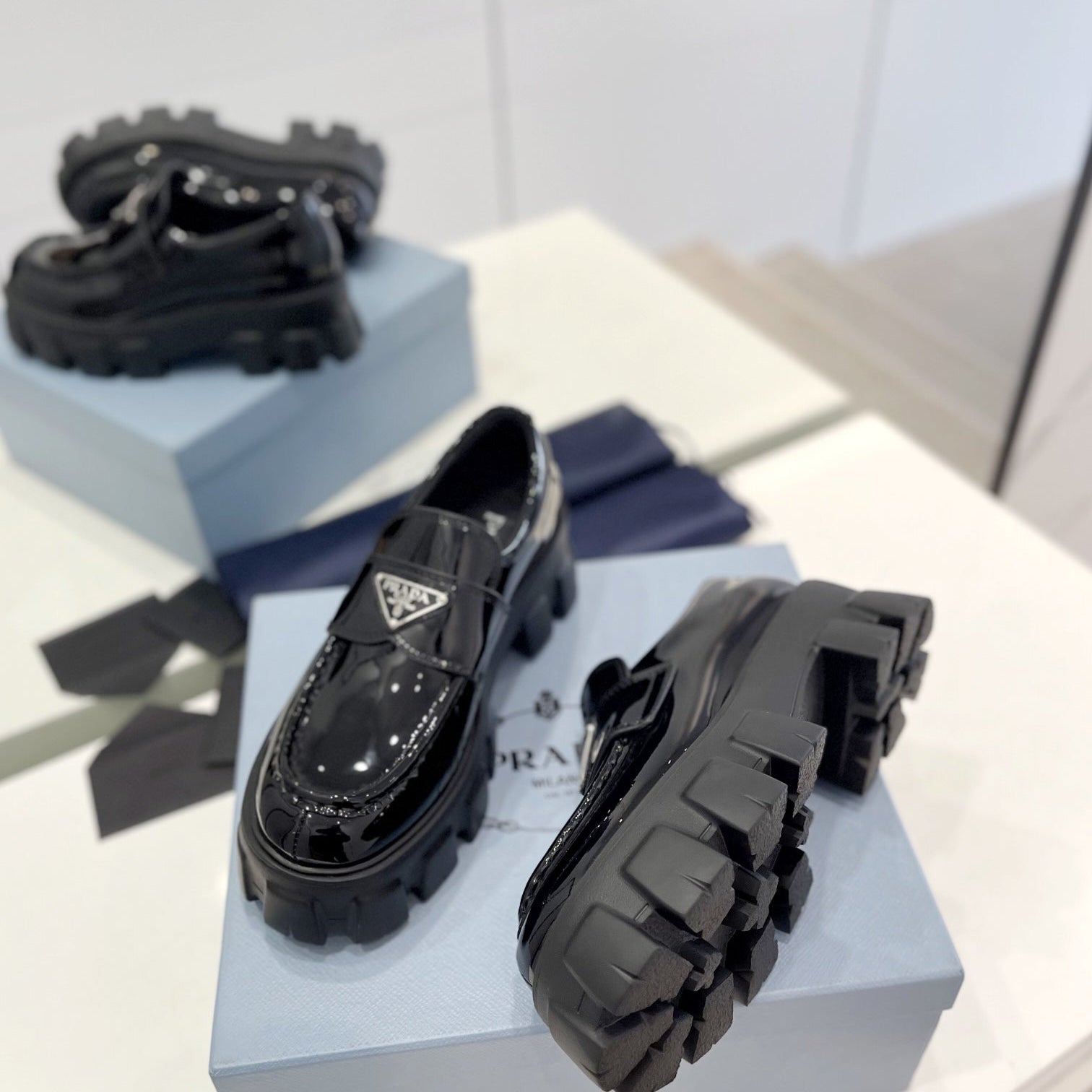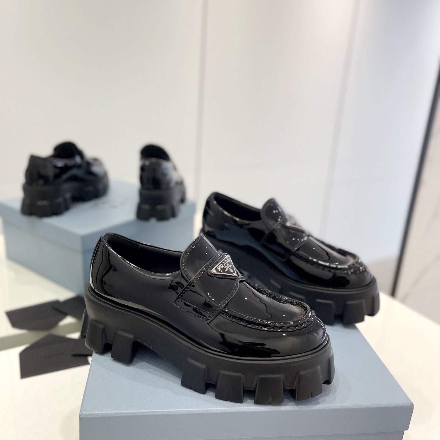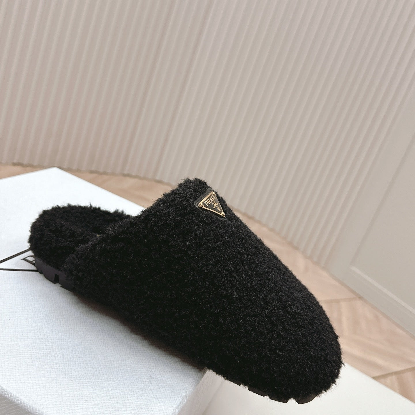 MULES ATTACHED TRIANGLE LOGO IN BLACK SHEARLING
