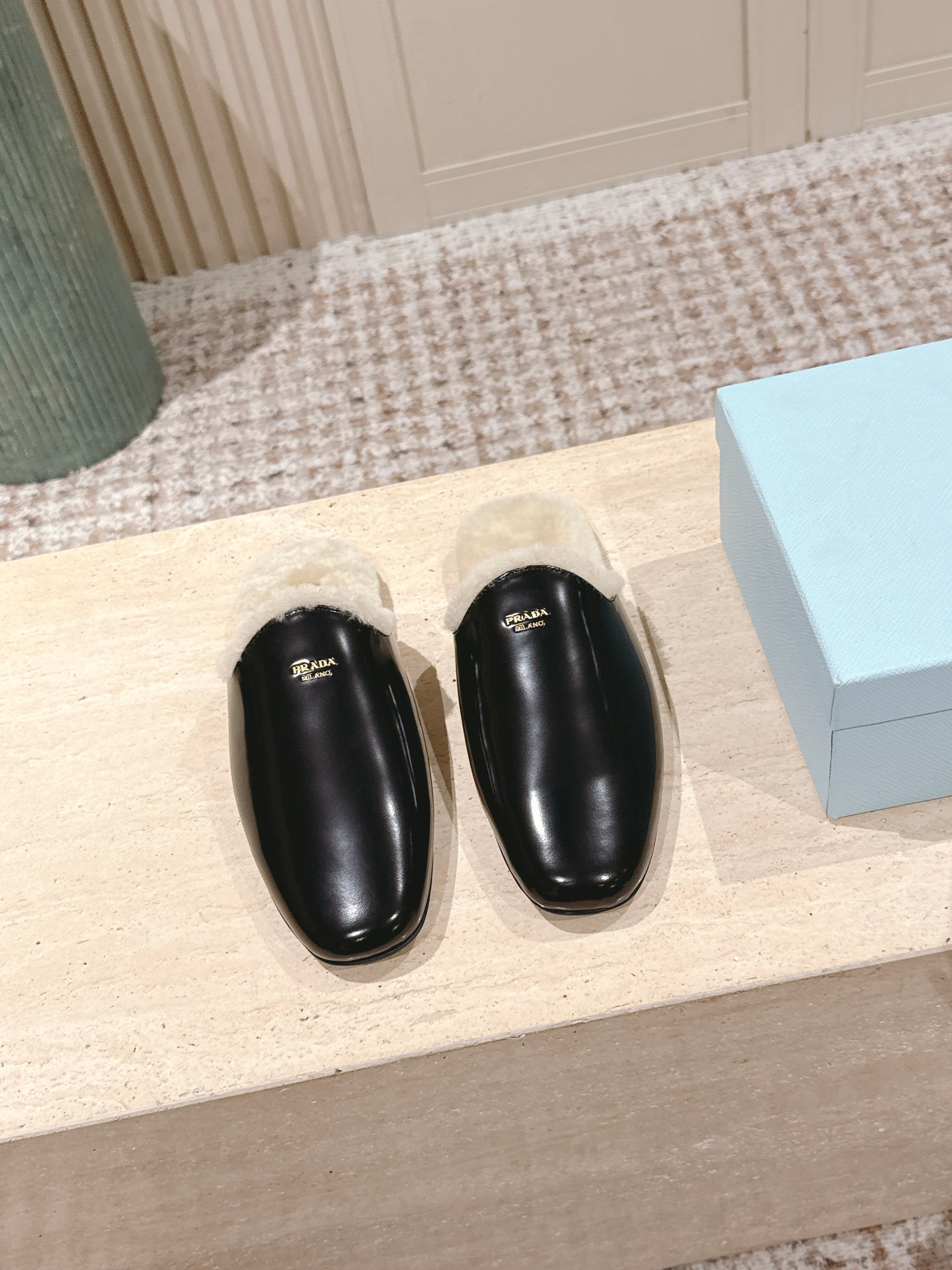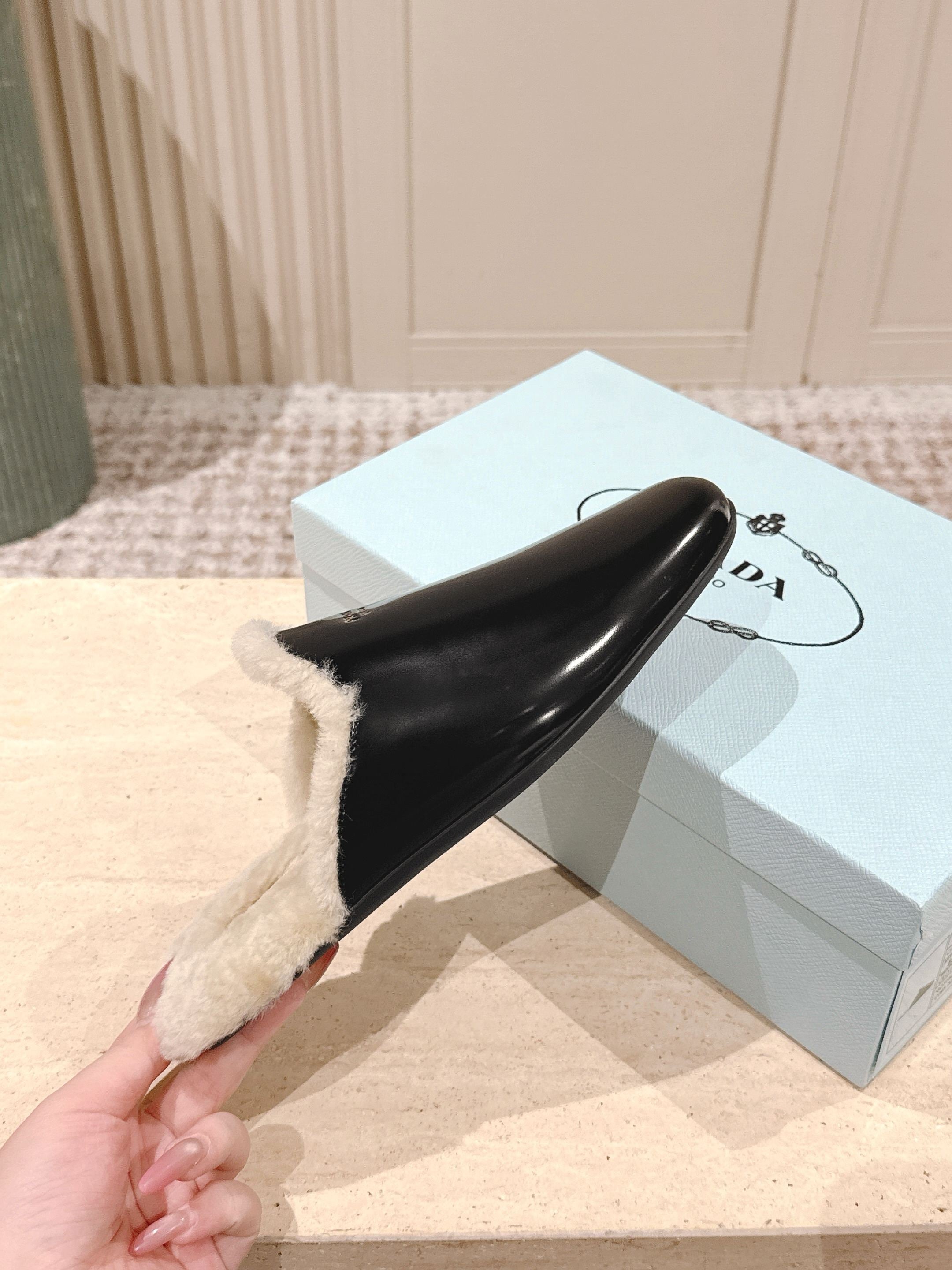 Pra 2025 Mule Black Beige Cowhide Wool 556281