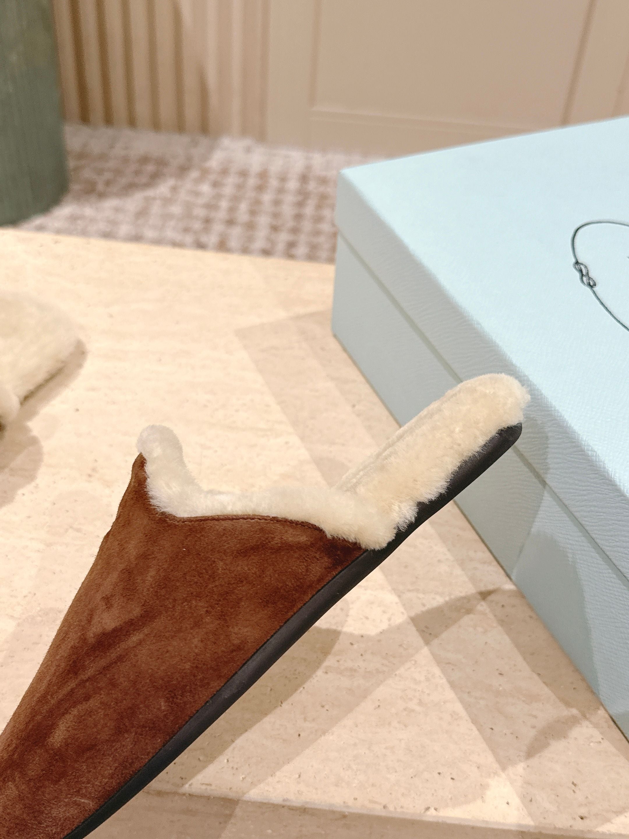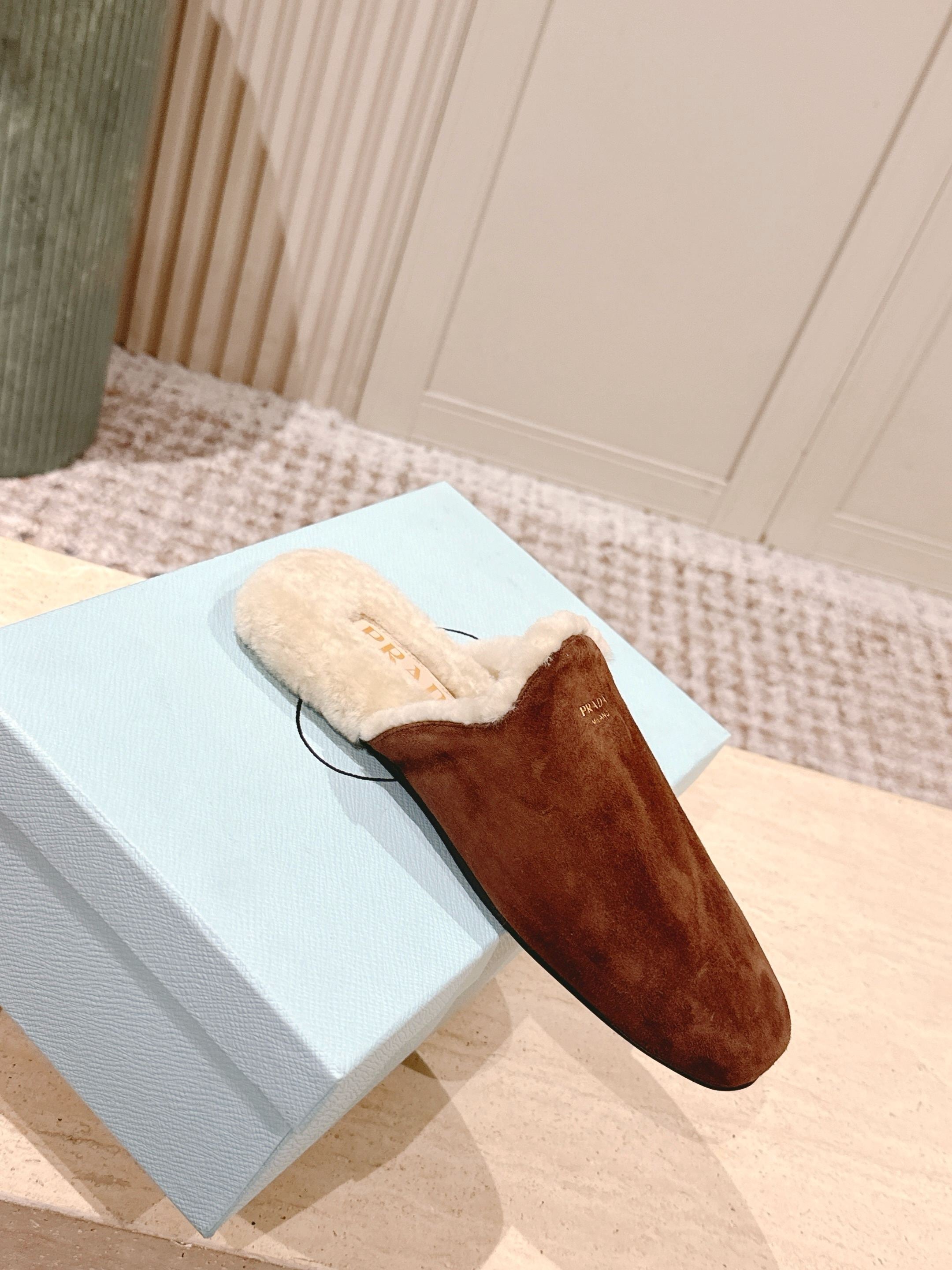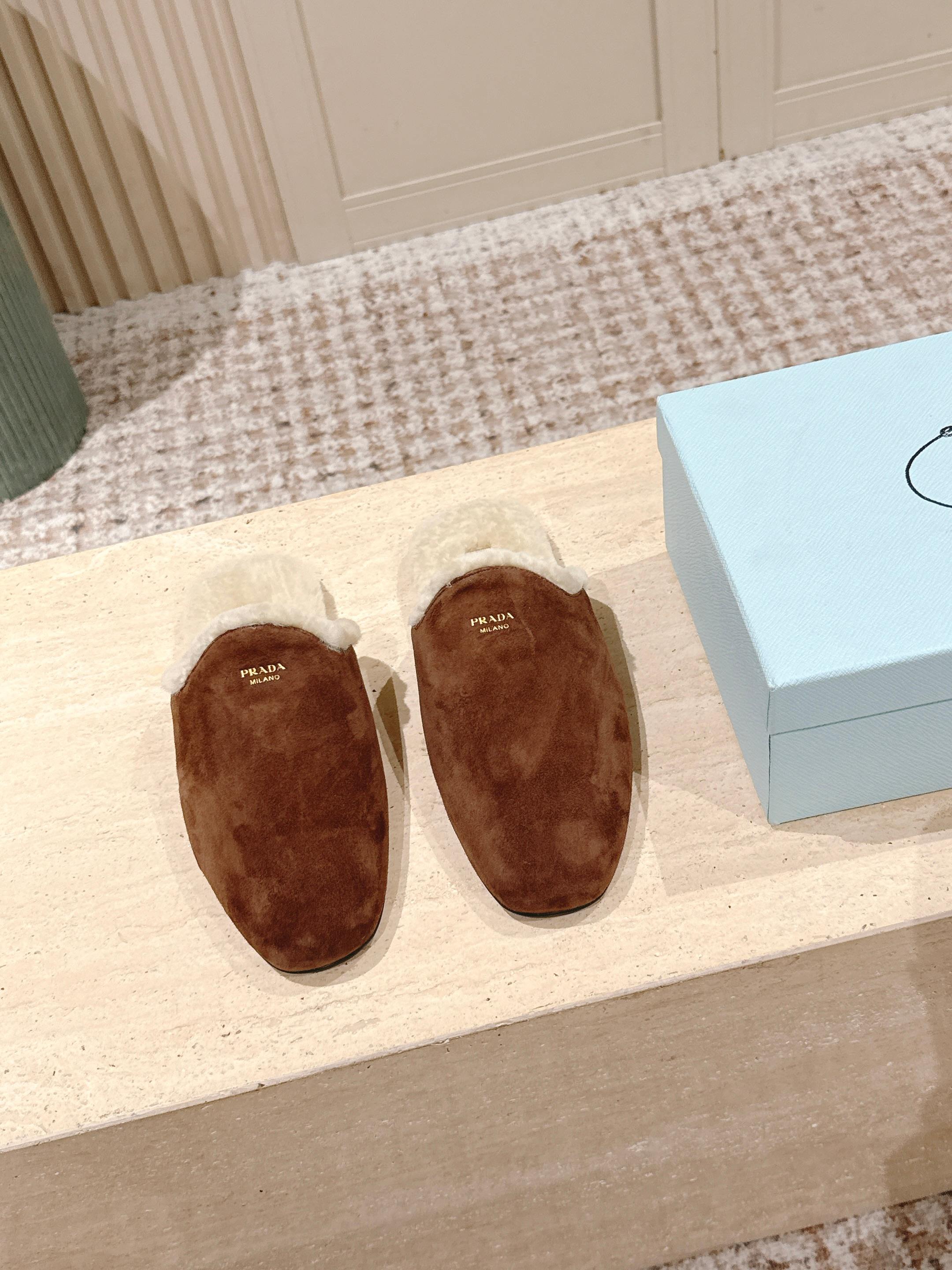 Pra 2025 Mule Brown Beige Suede Wool 556282