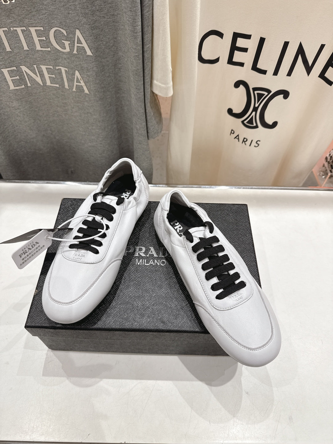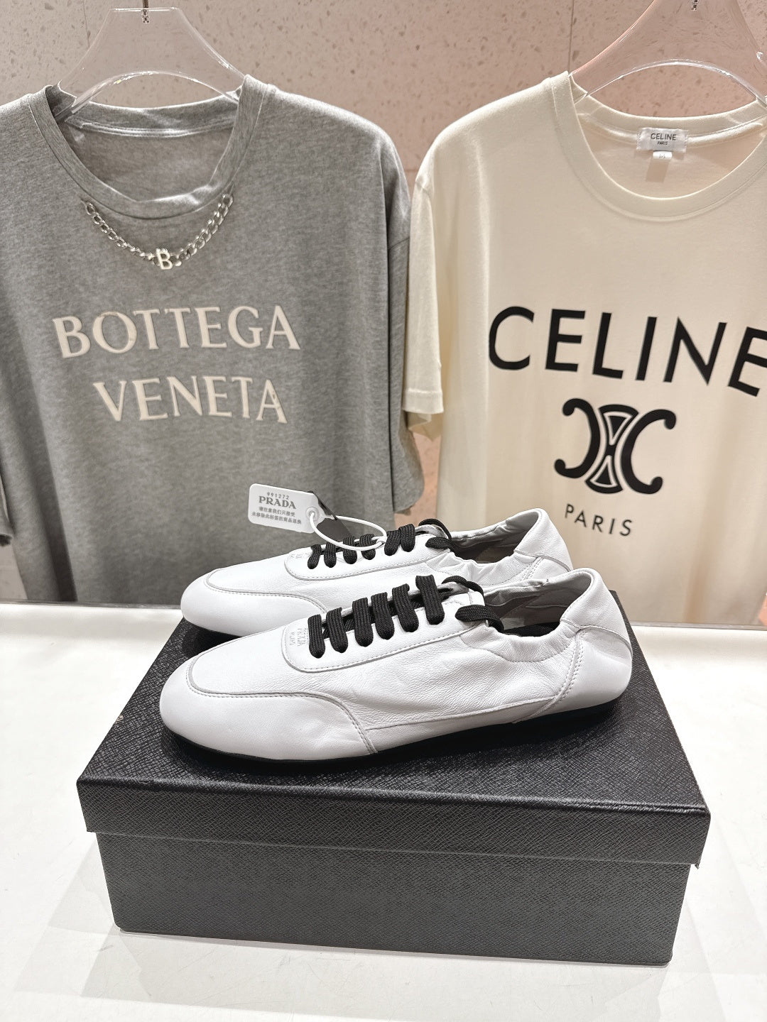 Prada 25s ballet flats white sheepskin 535497
