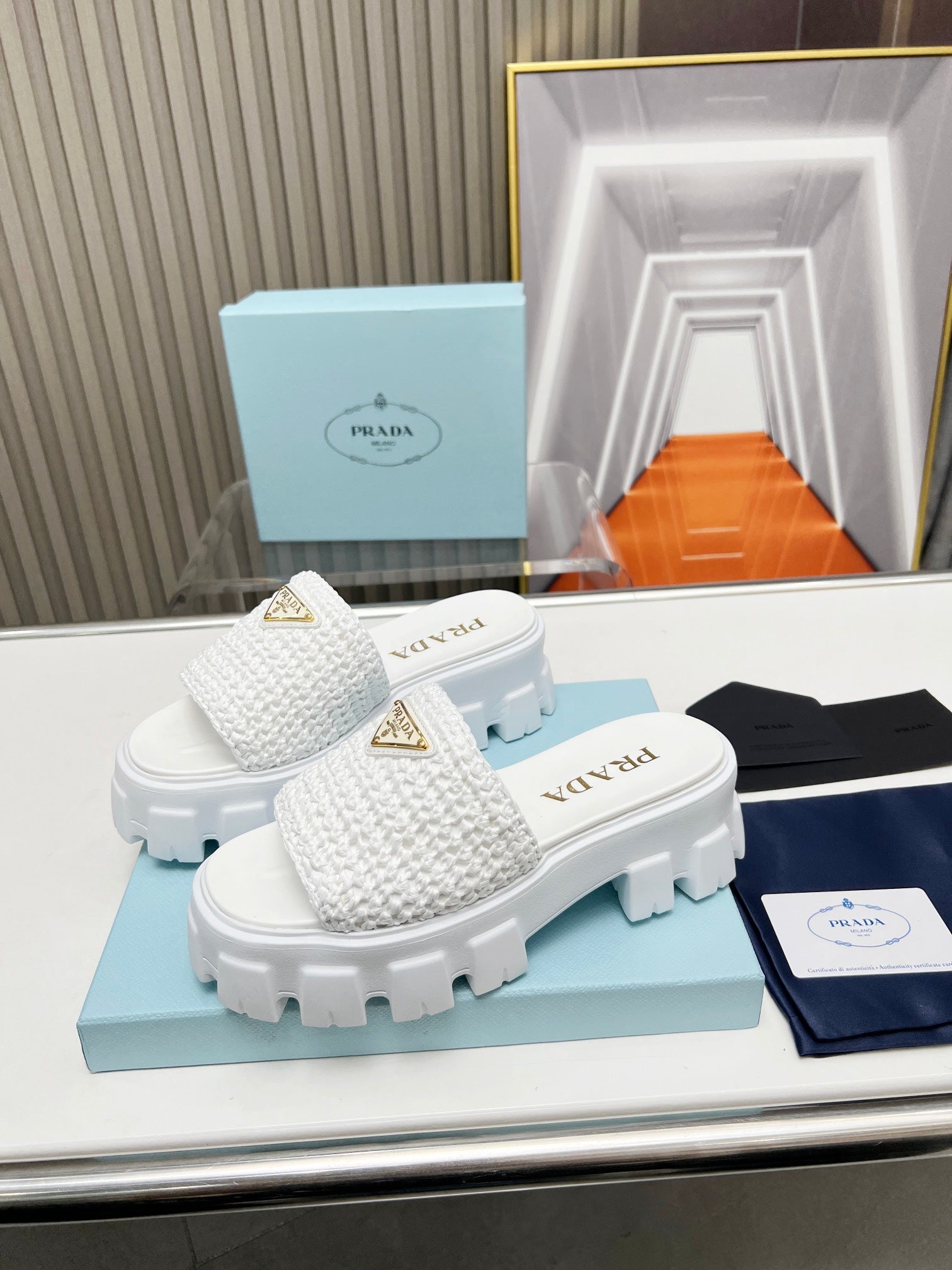 PRA CROCHET FLATFORM SLIDES BEIGE RAFFIA