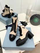 PRA BRUSHED LEATHER AND RE-NYLON LACED BOOTIES PASTEL PINK