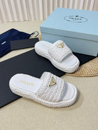 PRA CROCHET FLATFORM SLIDES WHITE RAFFIA