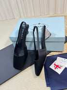 PRA SQUARE TOE SLINGBACK PUMPS BLACK SATIN