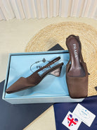PRA SQUARE TOE SLINGBACK PUMPS CHOCOLATE SATIN