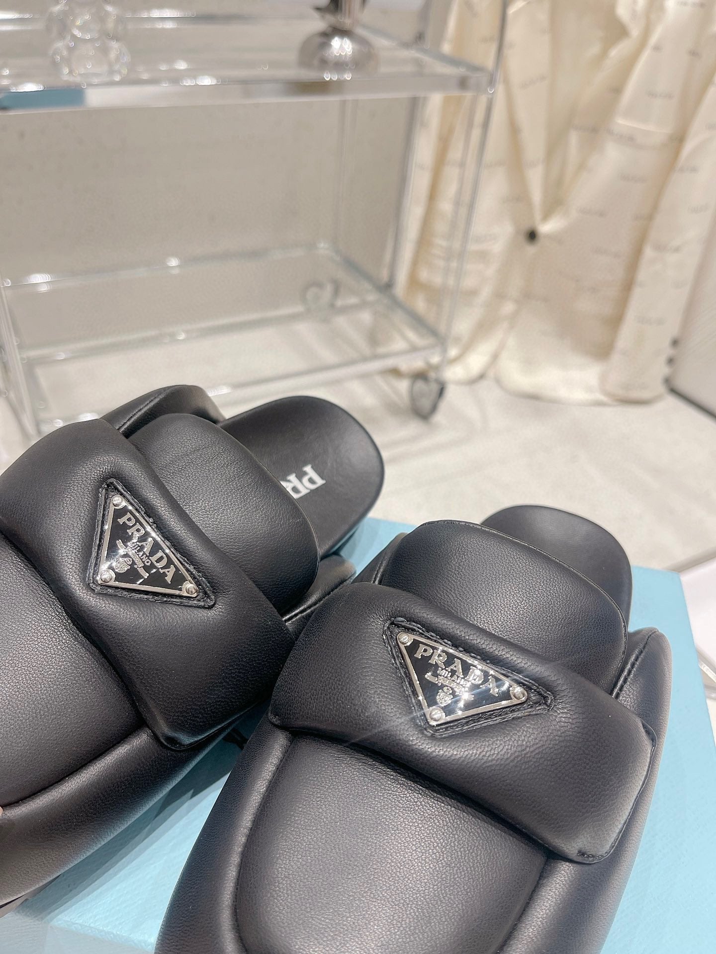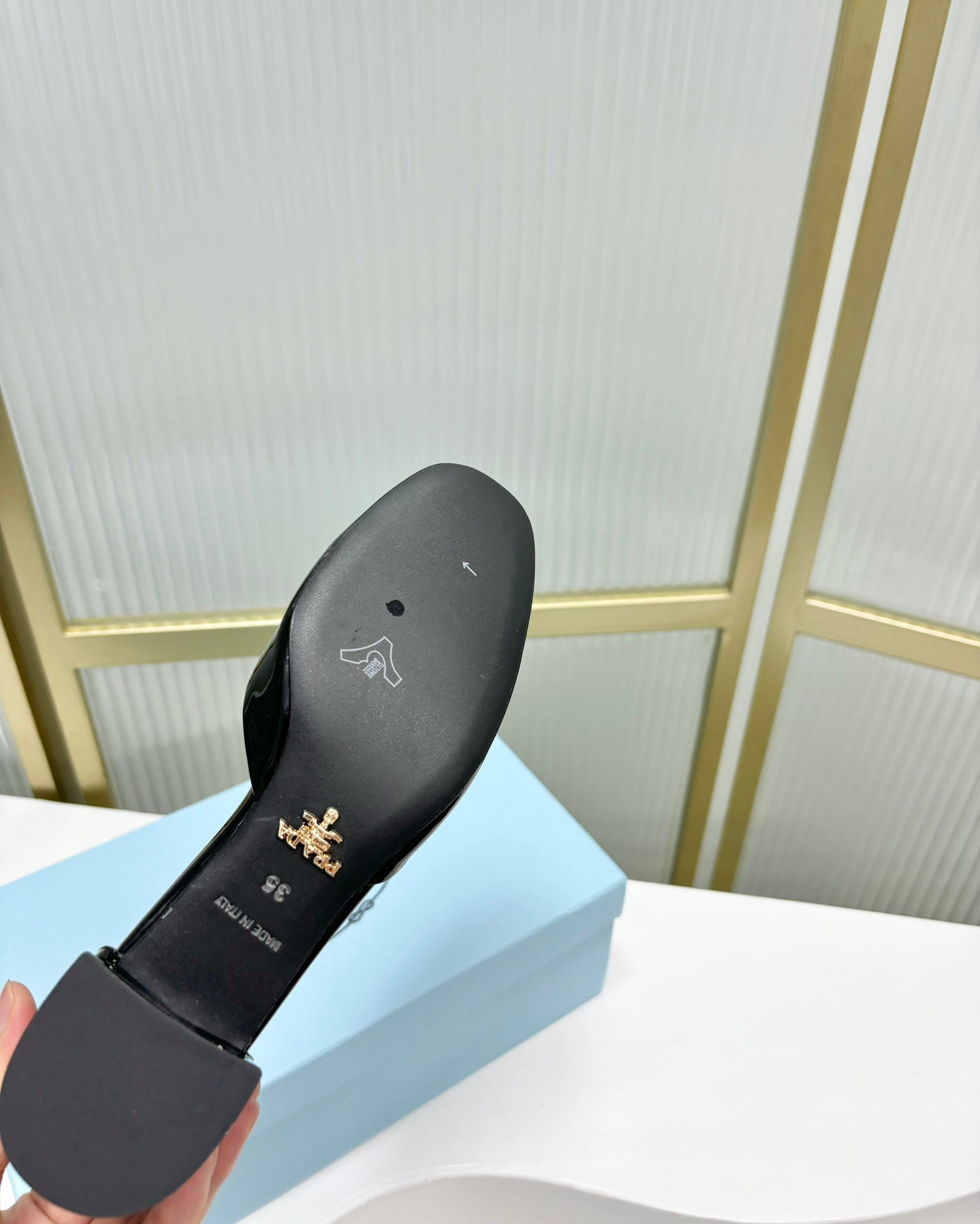 PRA SAFFIANO PATENT SLIDES BLACK CALFSKIN