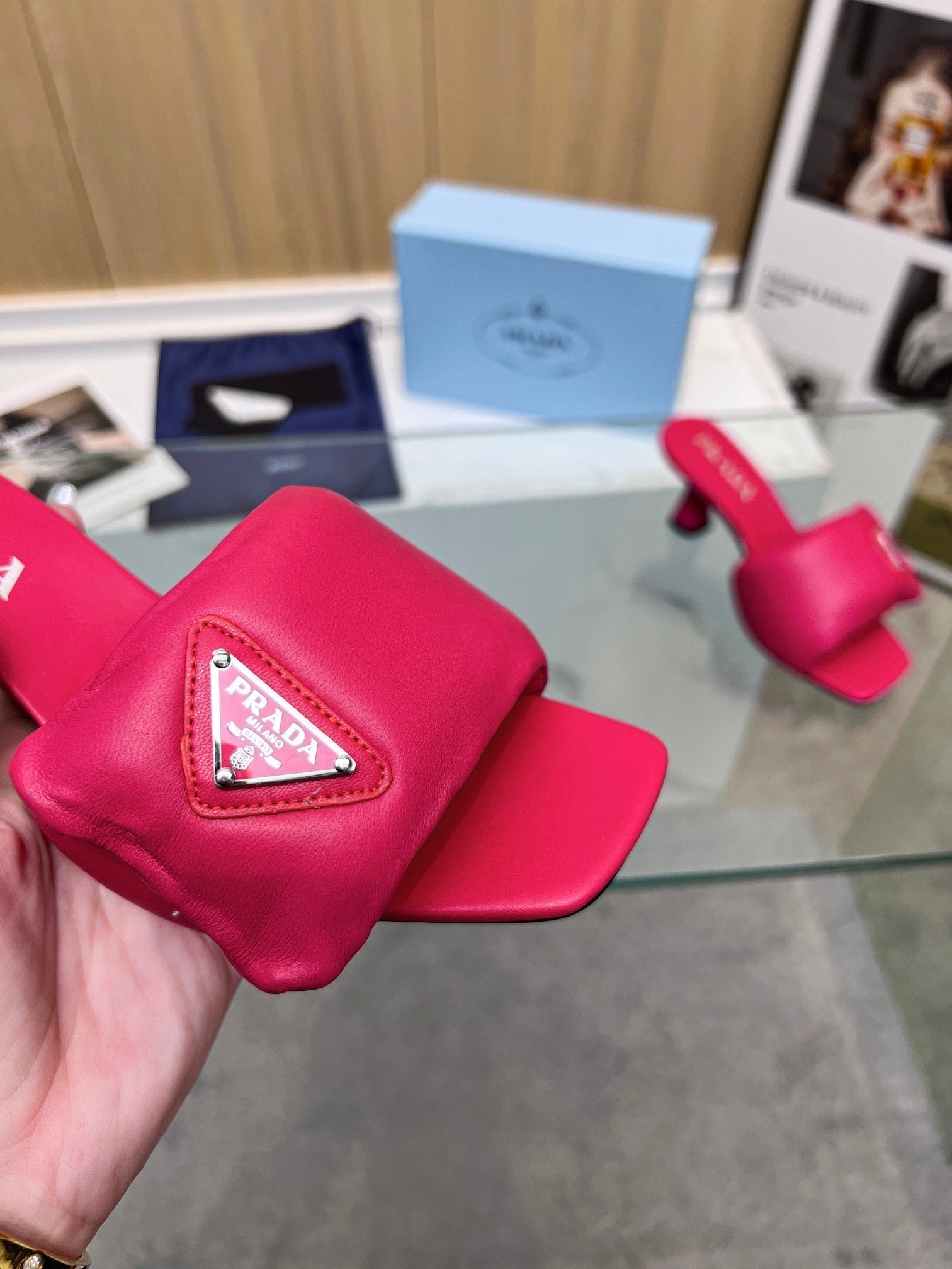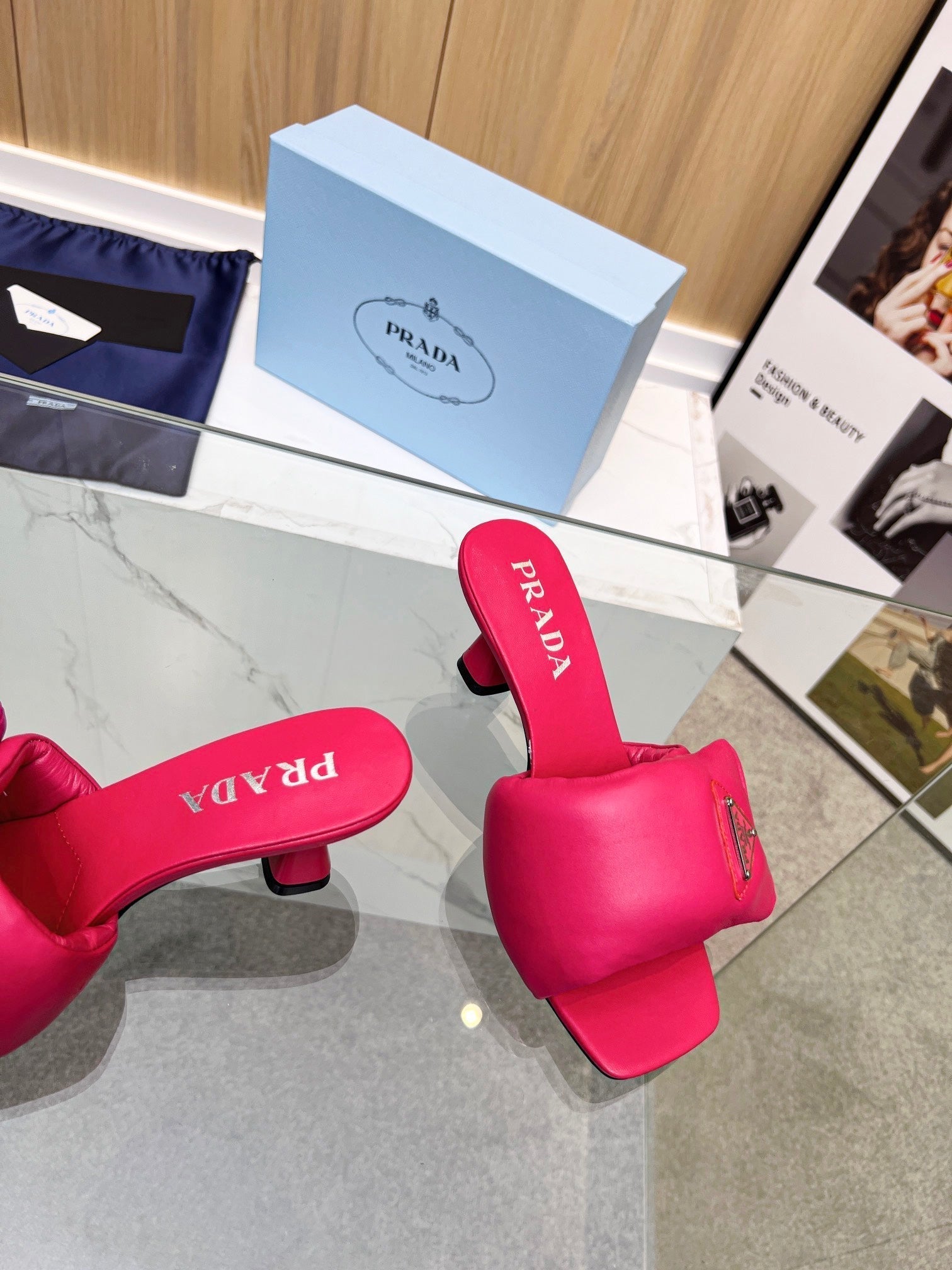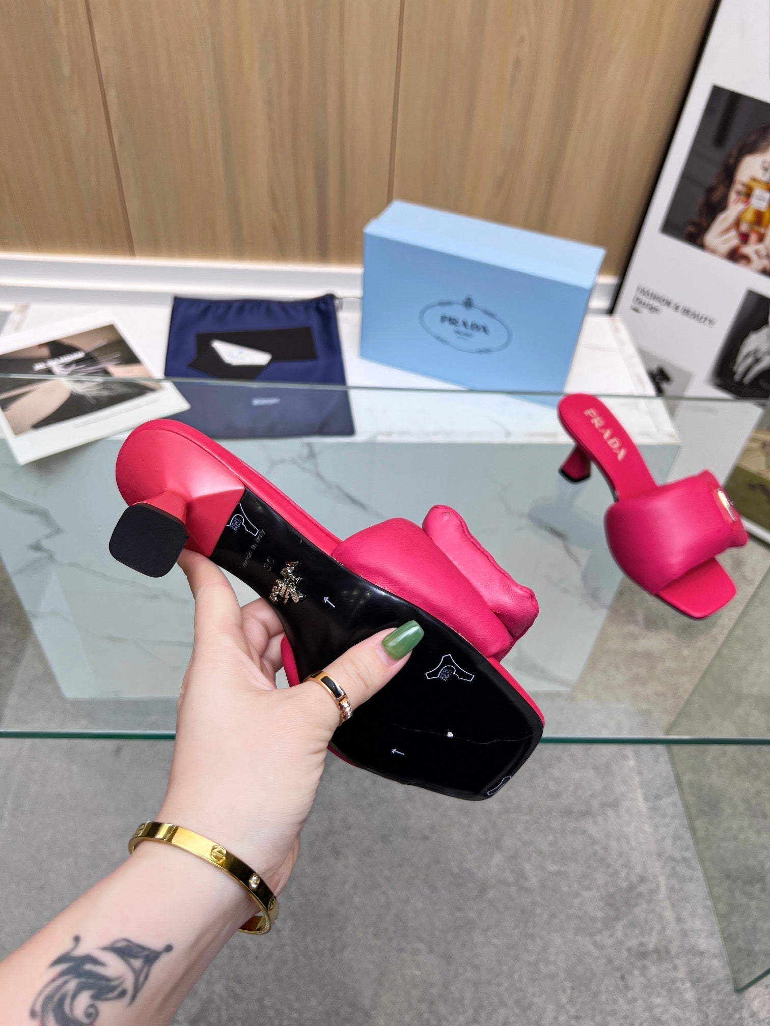PRA TRIANGLE HEEL SATIN SLIPPERS CRIMSON