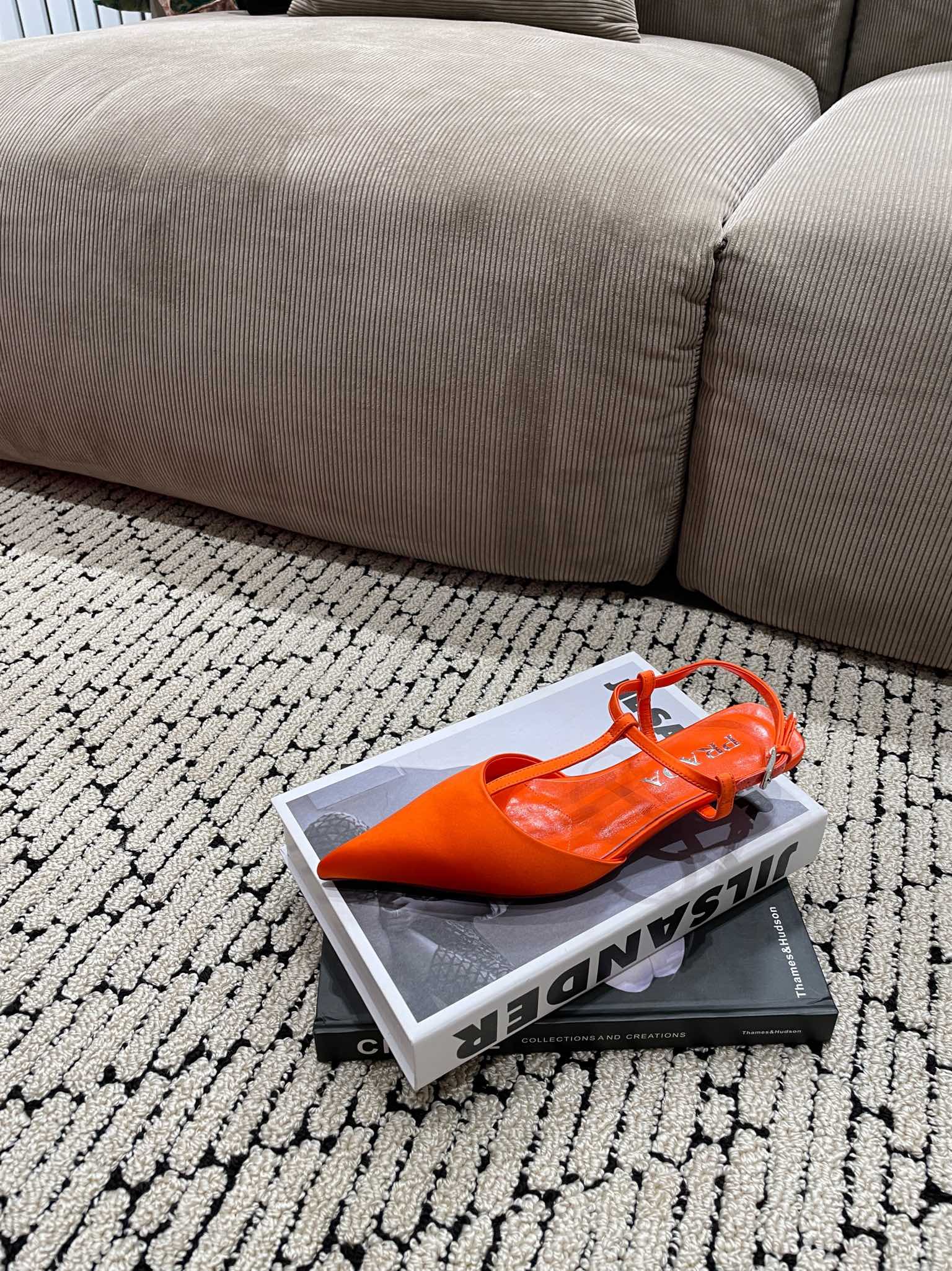 PRA POINTED TOE SLINGBACK PUMPS BRIGHT ORANGE SATIN