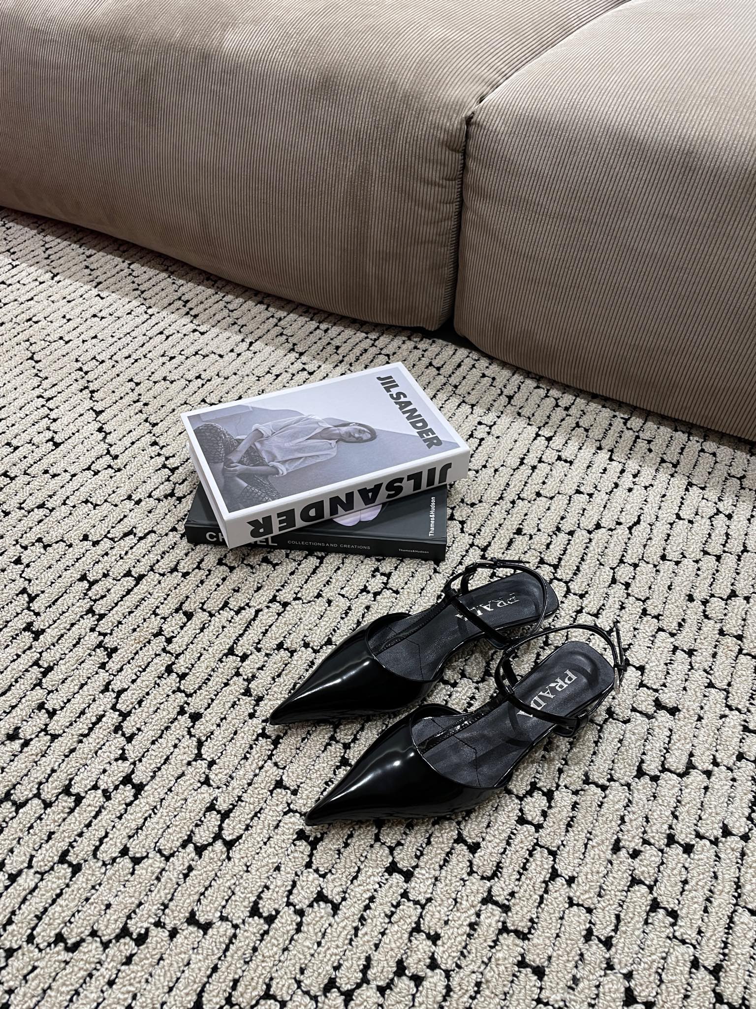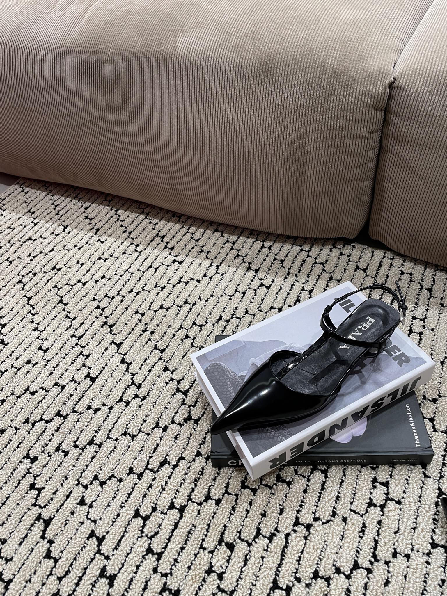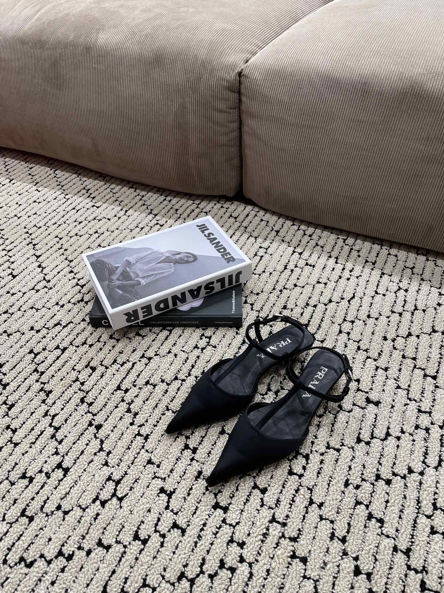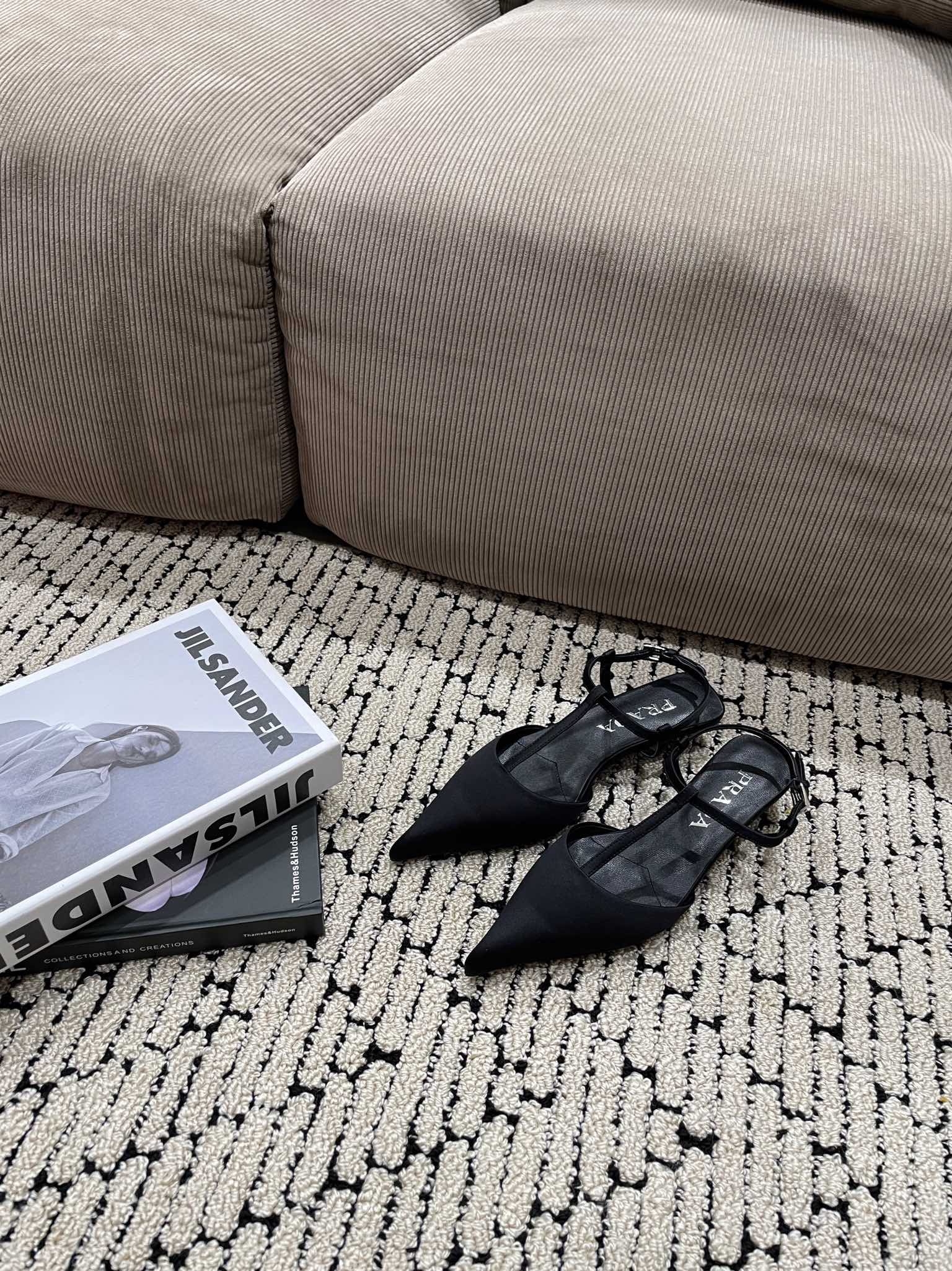 PRA POINTED TOE SLINGBACK PUMPS BLACK SATIN