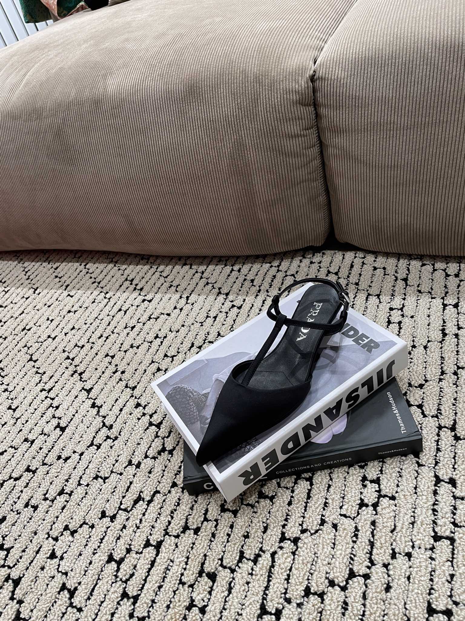 PRA SQUARE TOE SLINGBACK PUMPS BLACK SATIN
