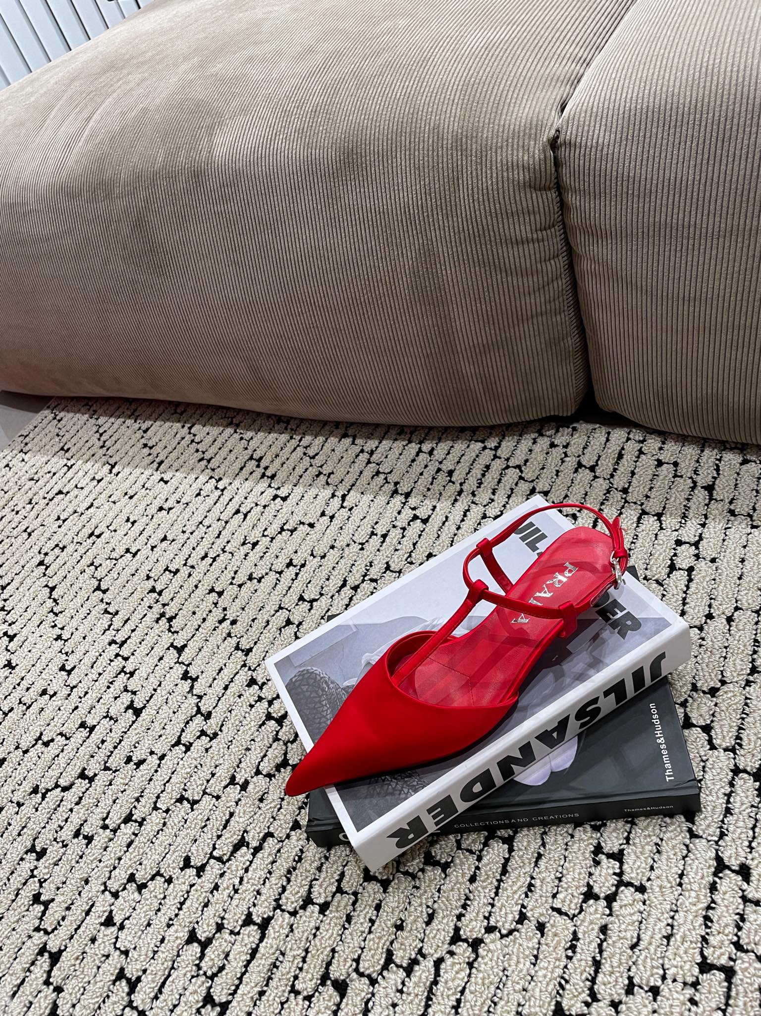 PRA SATIN SLINGBACK PUMPS CRIMSON