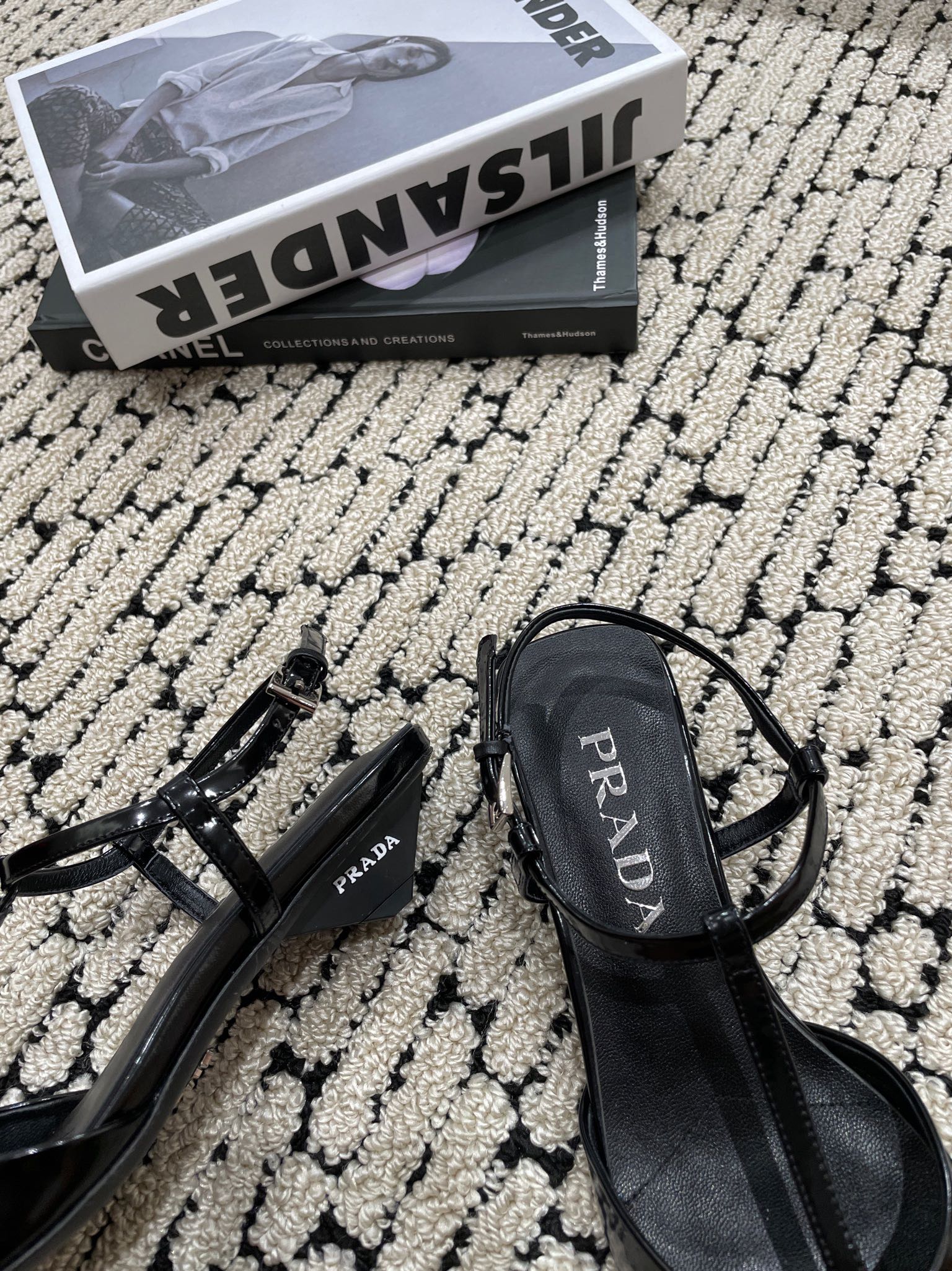 PRA STRAP CUT-OUT PUMPS BLACK CALFSKIN
