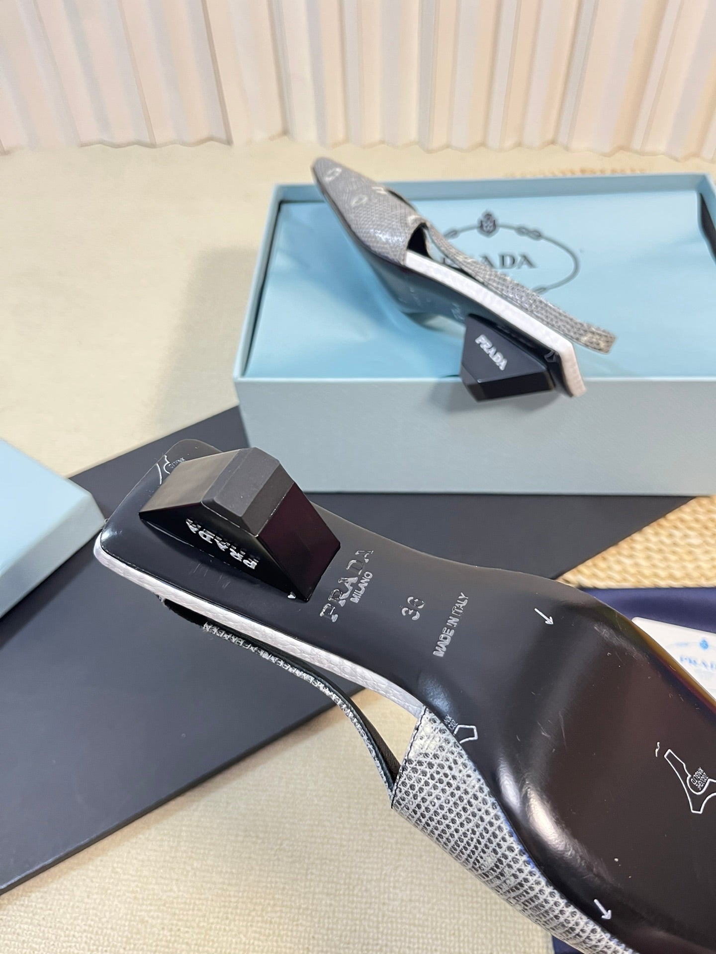 PRA SQUARE TOE MULES SNAKESKIN MOTIF SATIN