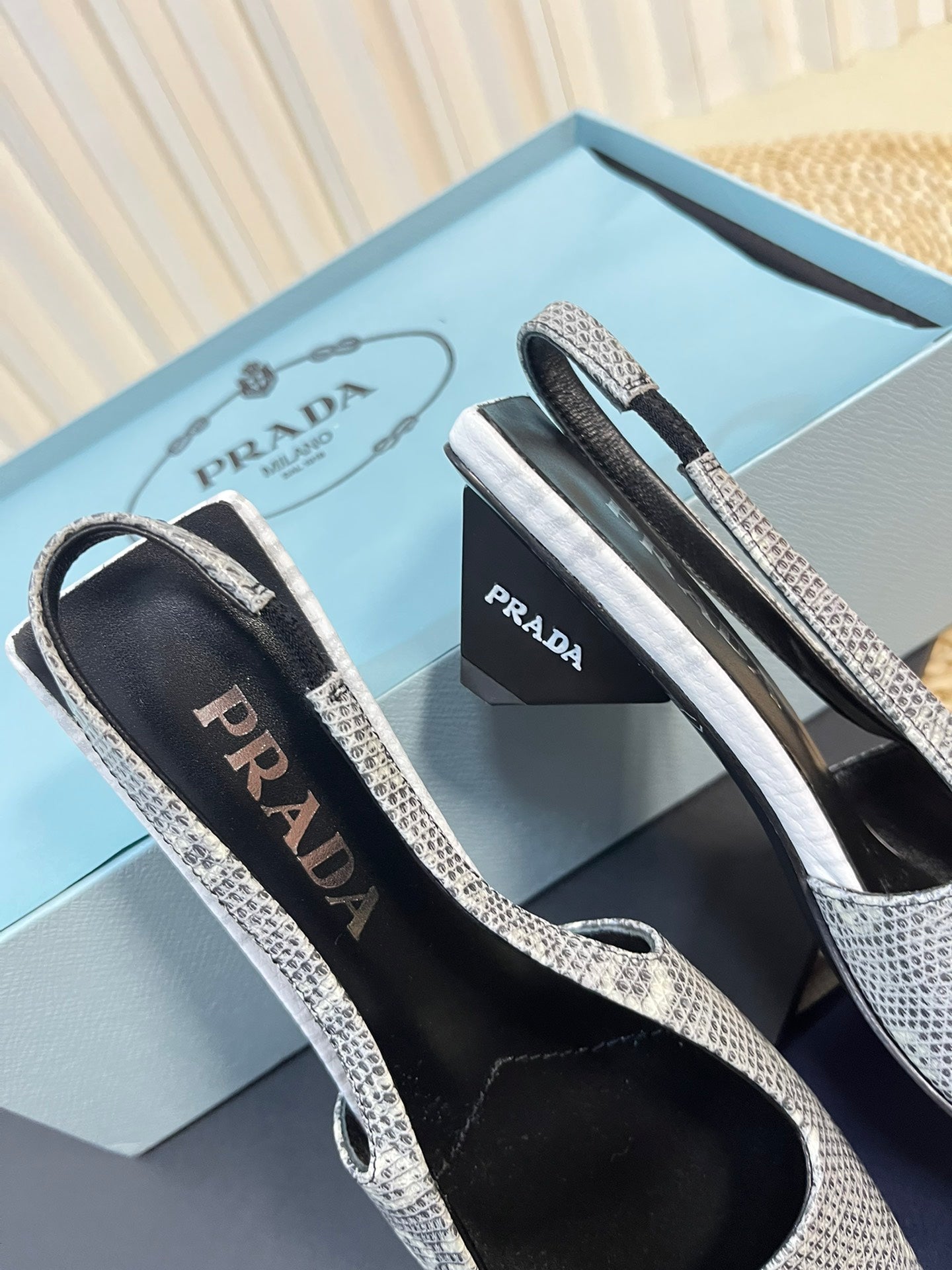PRA SQUARE TOE SLINGBACK PUMPS SNAKESKIN MOTIF SATIN
