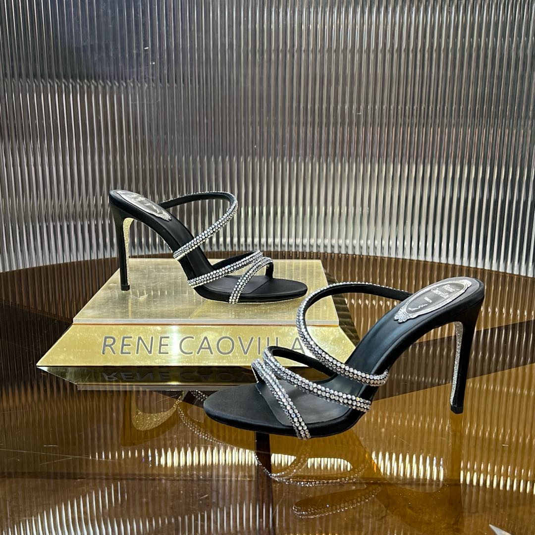 RC 25 Crystal Tassel High-Heeled Sandals Black Silk Crystal Diamond 253539