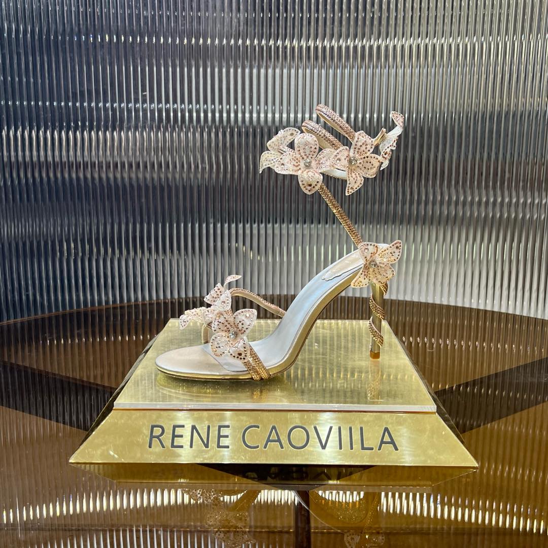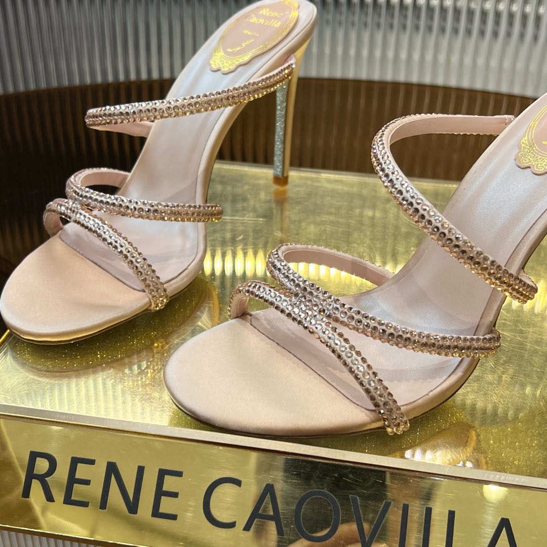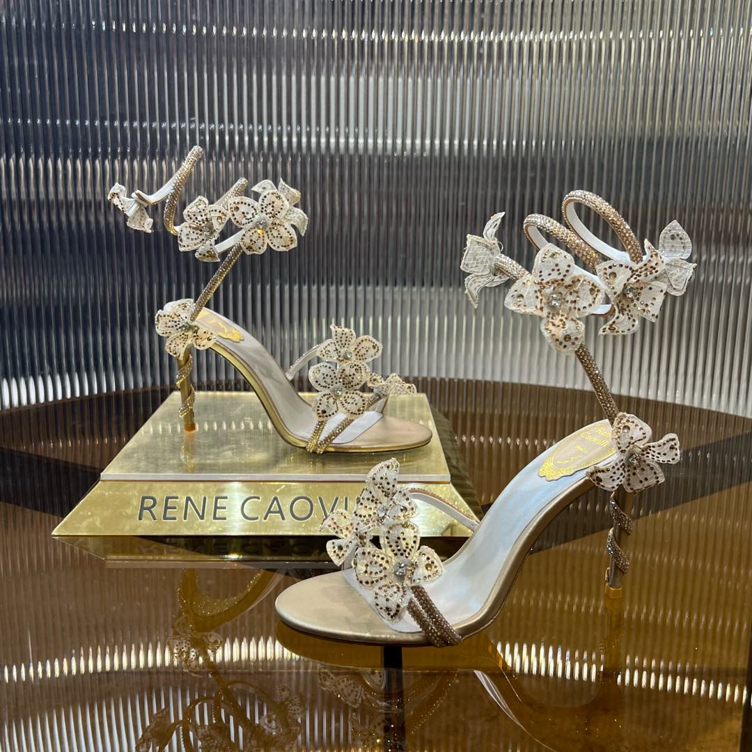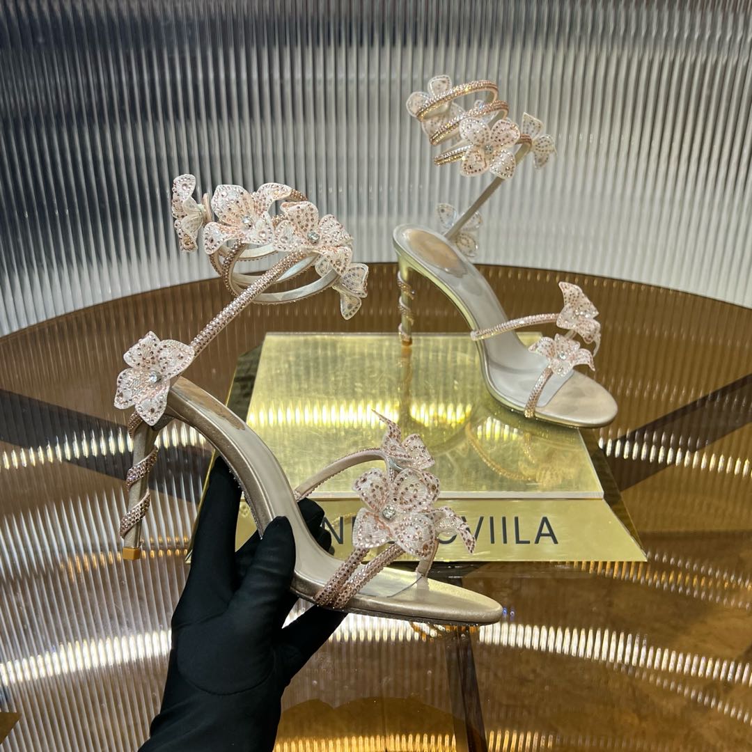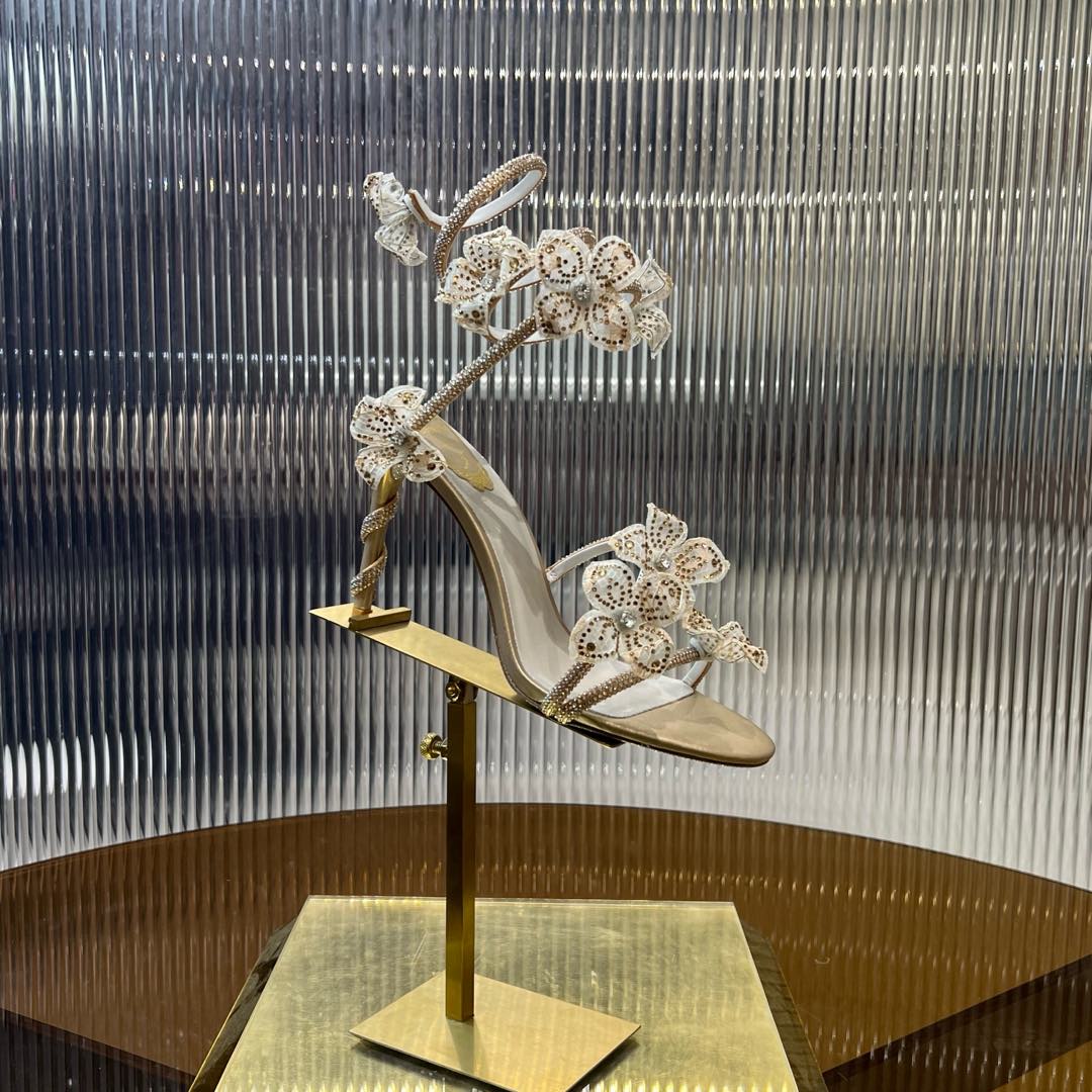 RC 25C Flower-Studded Diamond High-Heeled Sandals Beige Sheepskin 174917