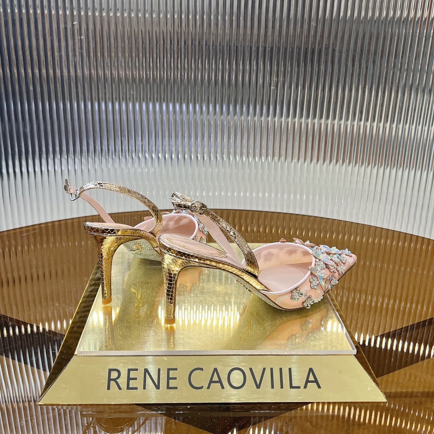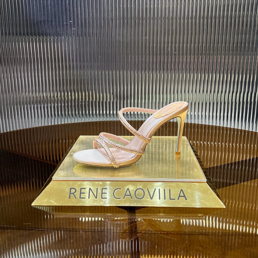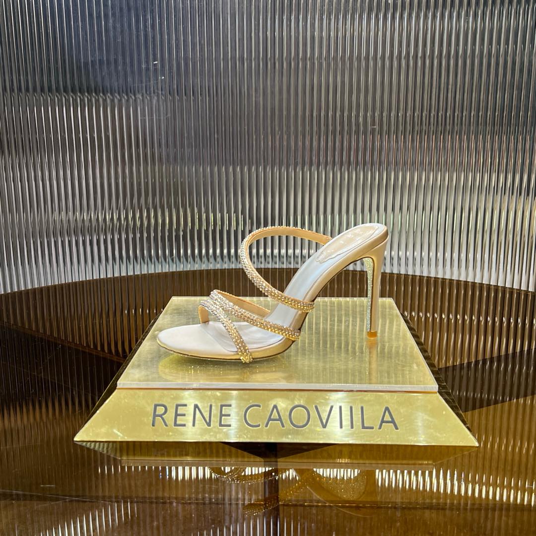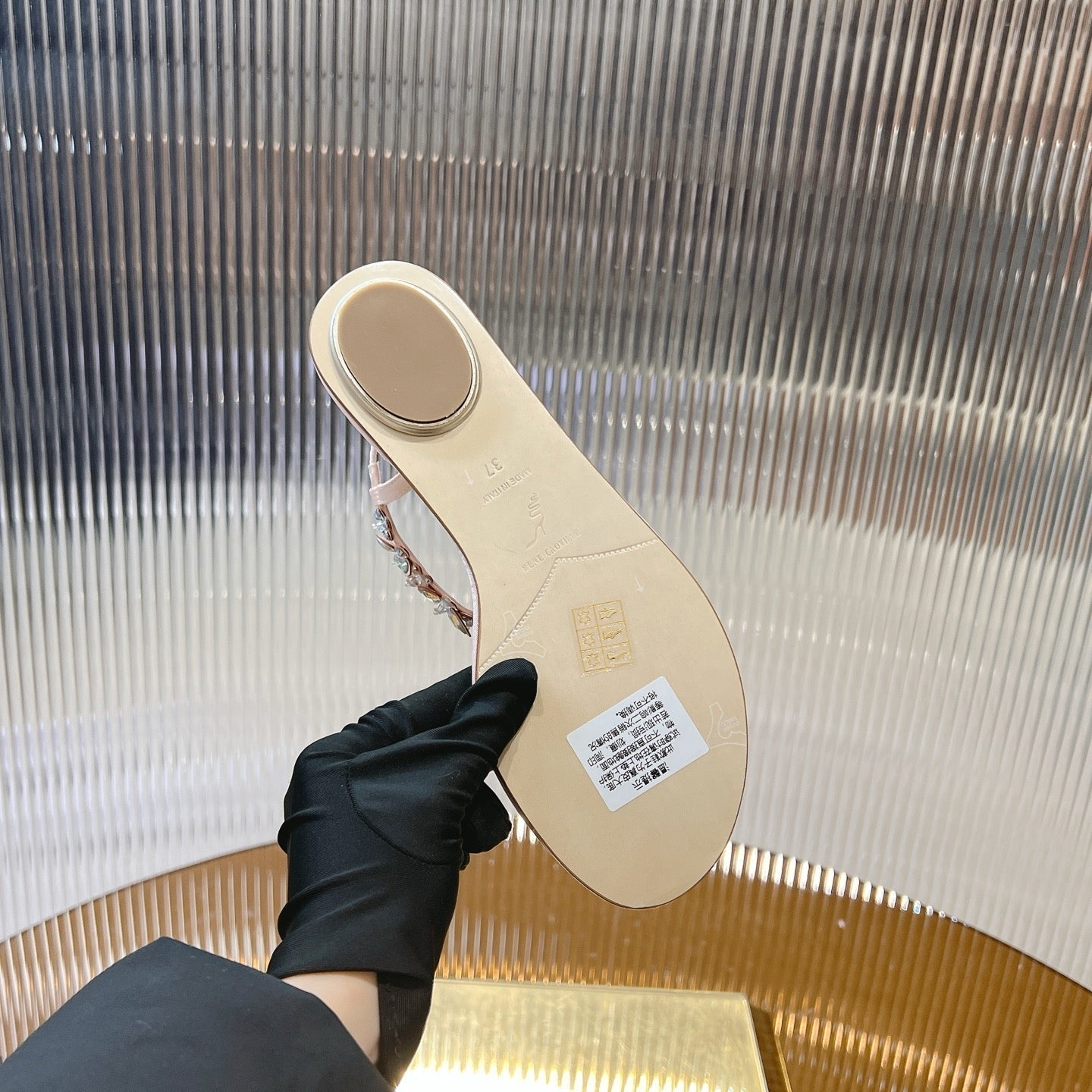 RC 25C Flower-Studded Diamond High-Heeled Sandals Beige Sheepskin 174917