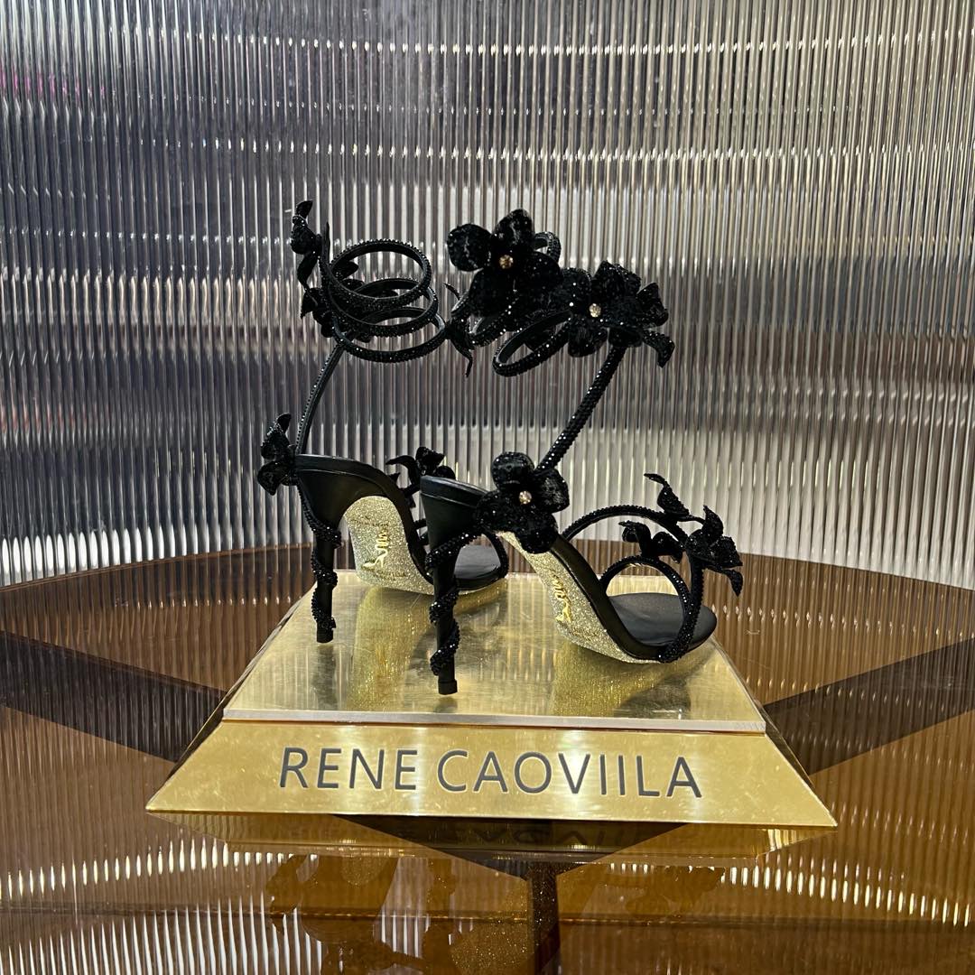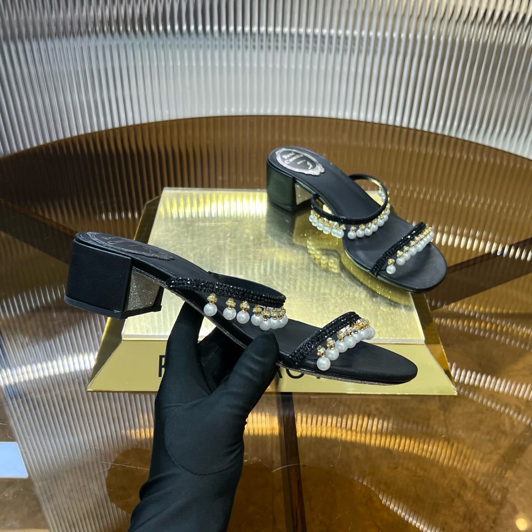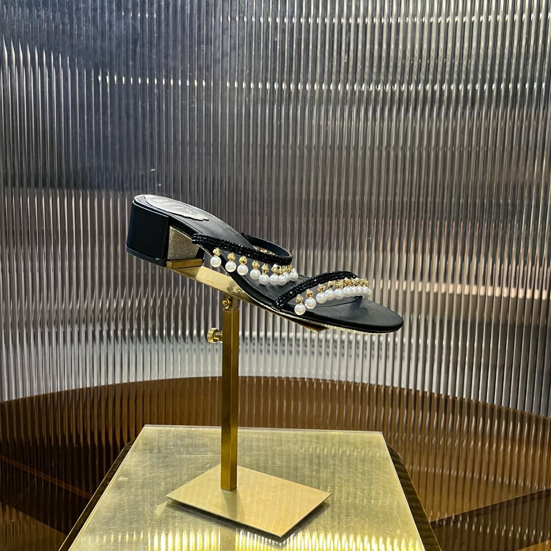 RC 25C Flower-Studded Diamond High-Heeled Sandals Black Sheepskin 174909