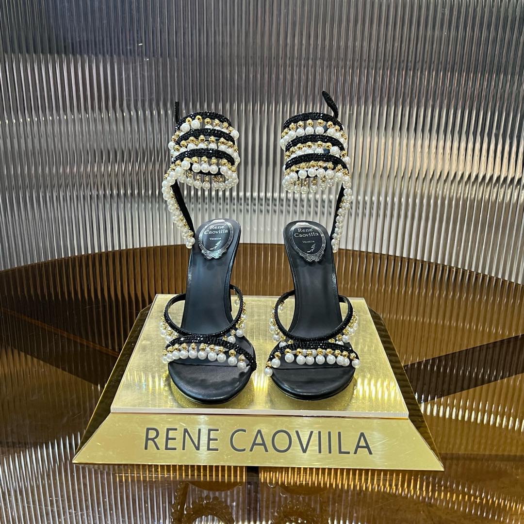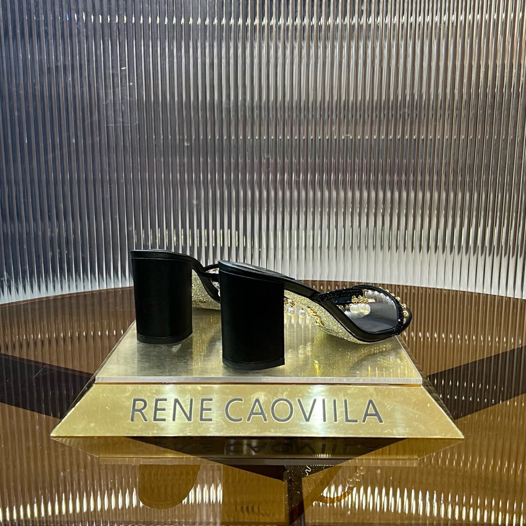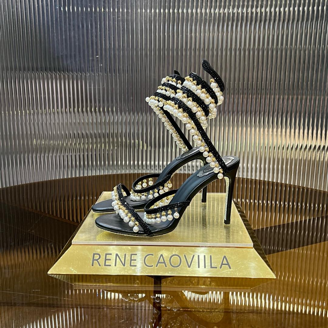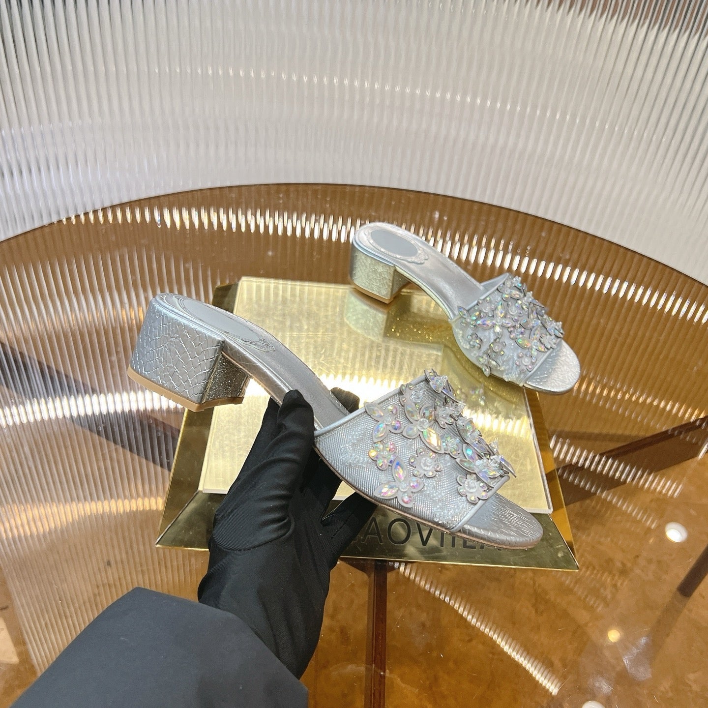 RC 25C Flower-Studded Diamond High-Heeled Sandals Black Sheepskin 174909