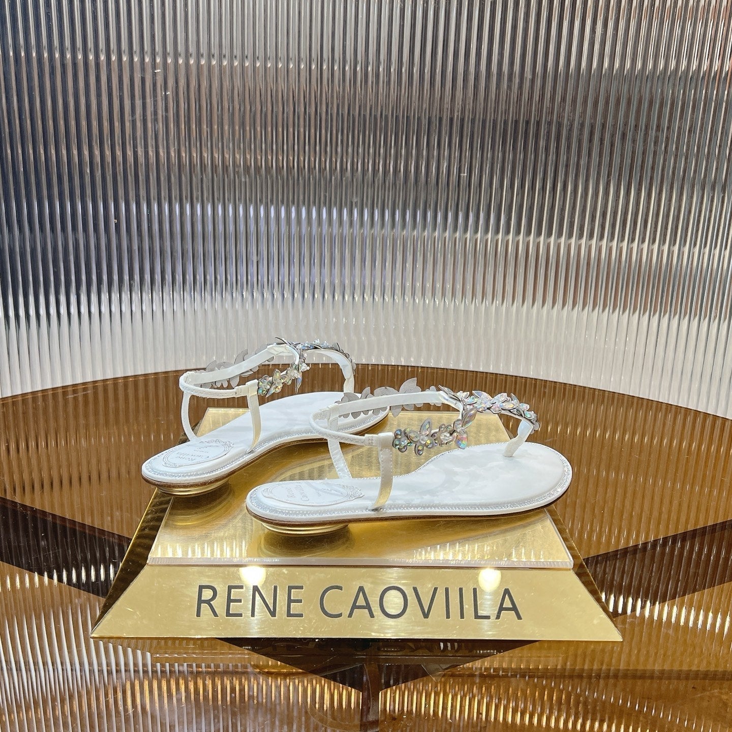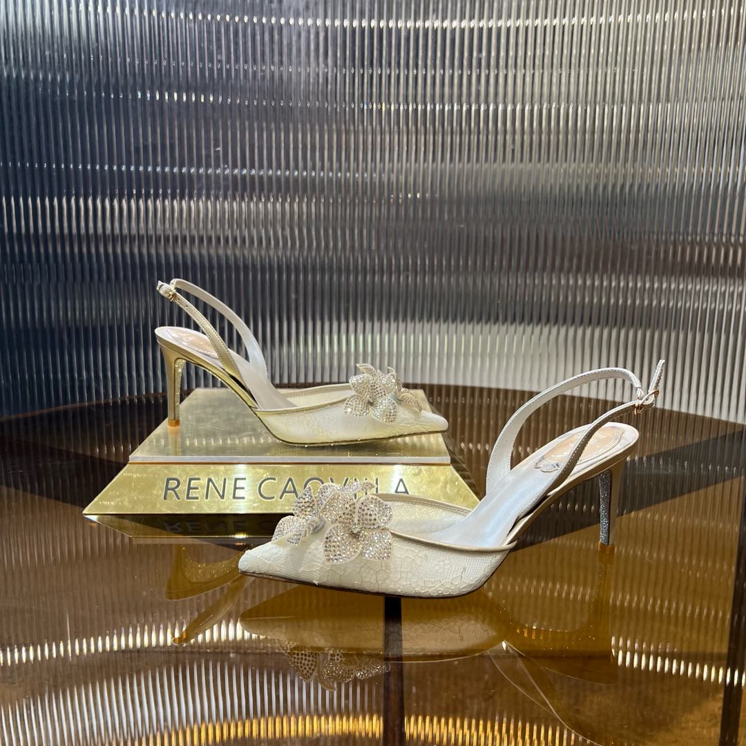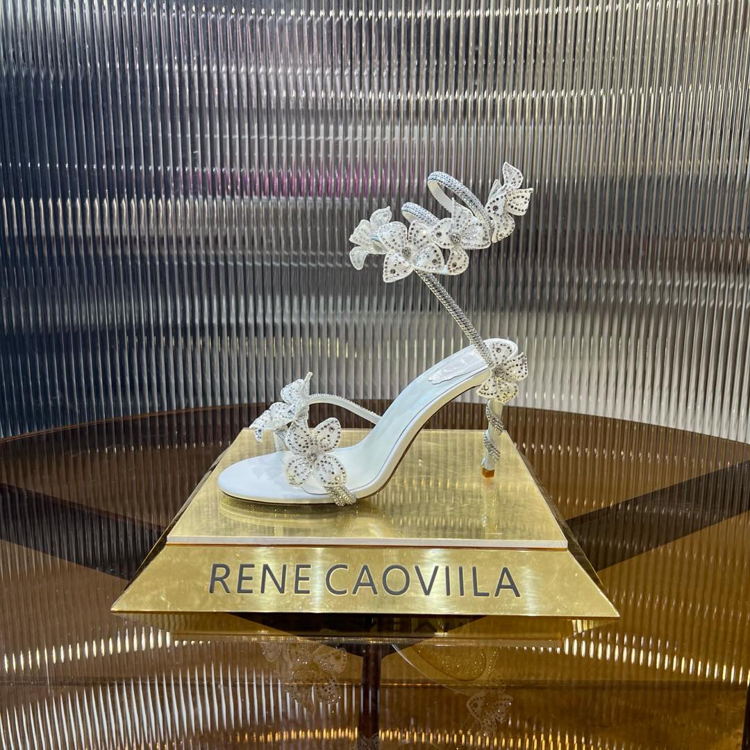 RC 25C Flower-Studded Diamond High-Heeled Sandals White Sheepskin 174905