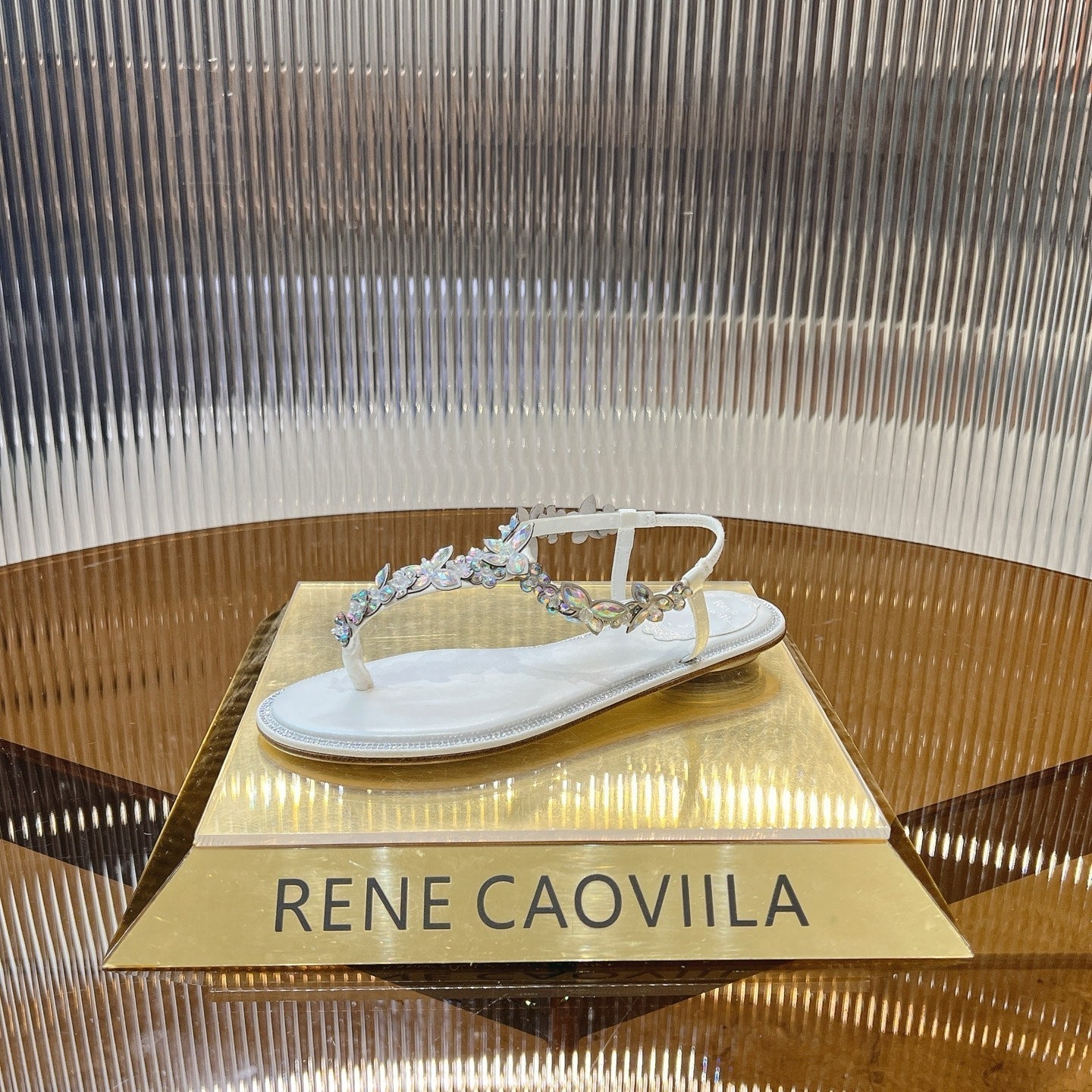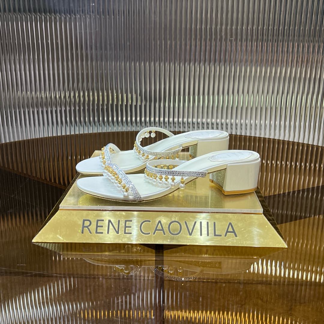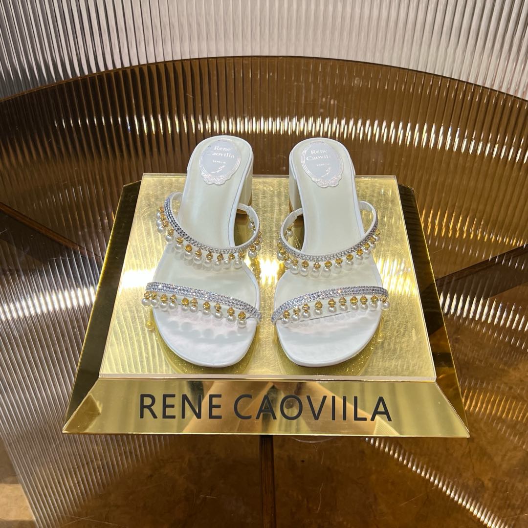 RC 25C Flower-Studded Diamond High-Heeled Sandals White Sheepskin 174905