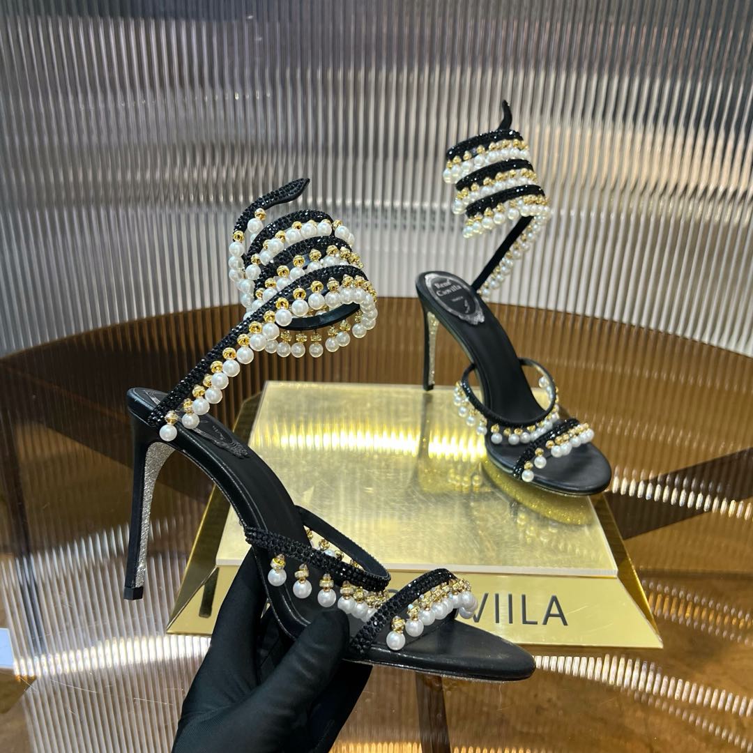 RC 25 Crystal Diamond Snake-Shaped High-Heeled Black Silk Rhinestones 253542