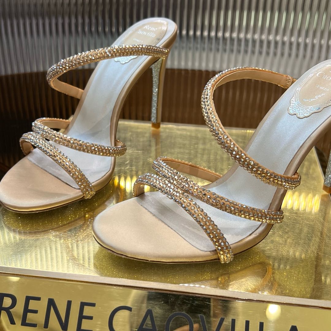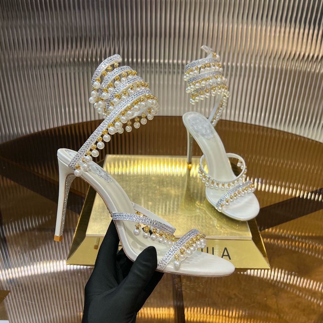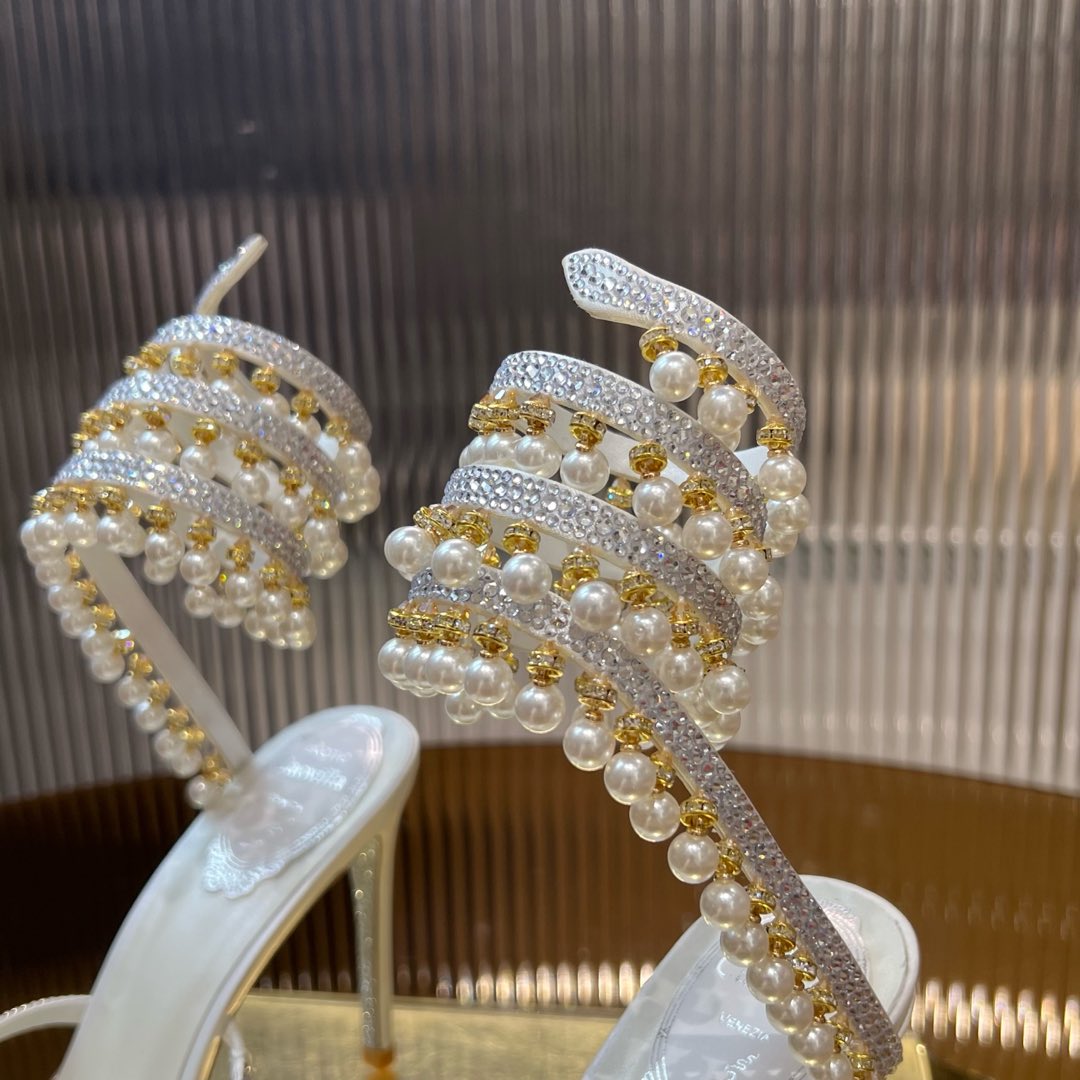 RC 25 Crystal Tassel High-Heeled Sandals White Silk Crystal Diamond 253540