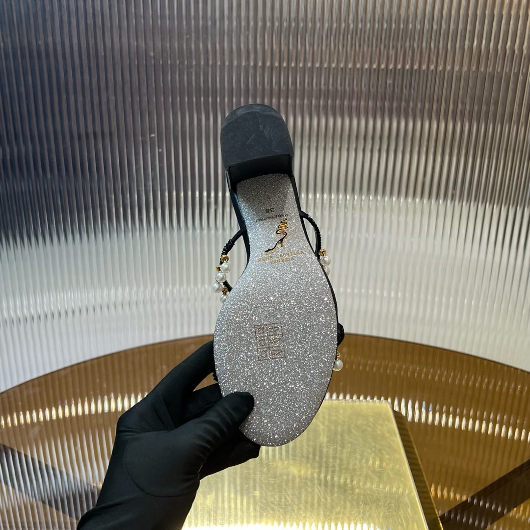 RC Gold Buckle Pearl Crystal Lamp Pendant Sandals 4.5 Black Sheepskin 175004