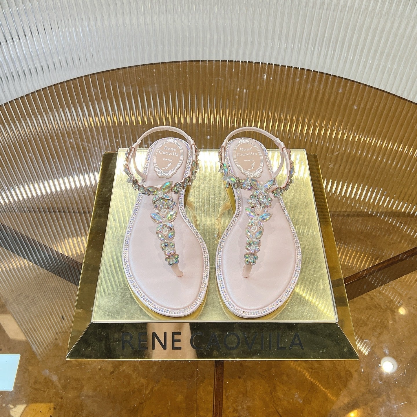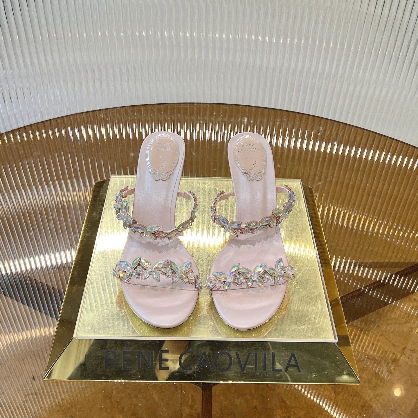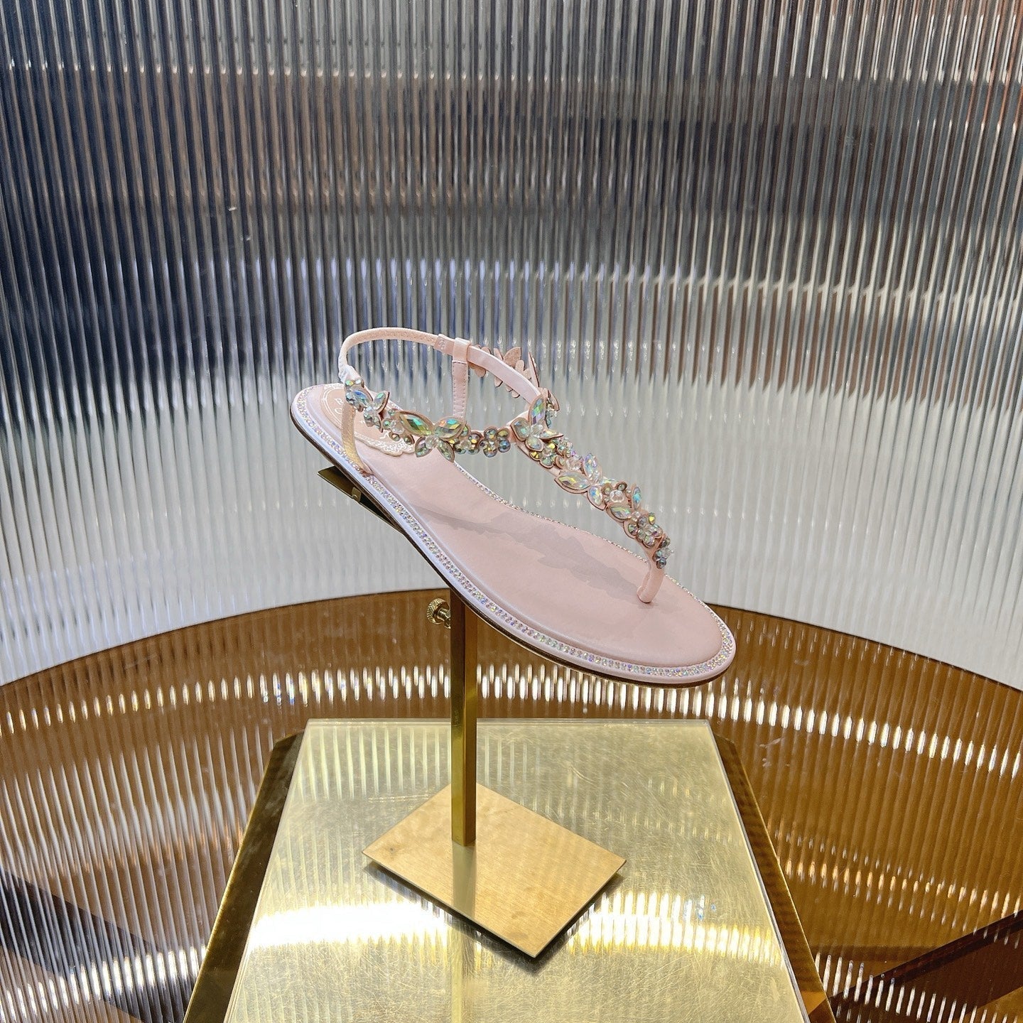 RC 25C Flower-Studded Diamond High-Heeled Sandals Pink Sheepskin 174913
