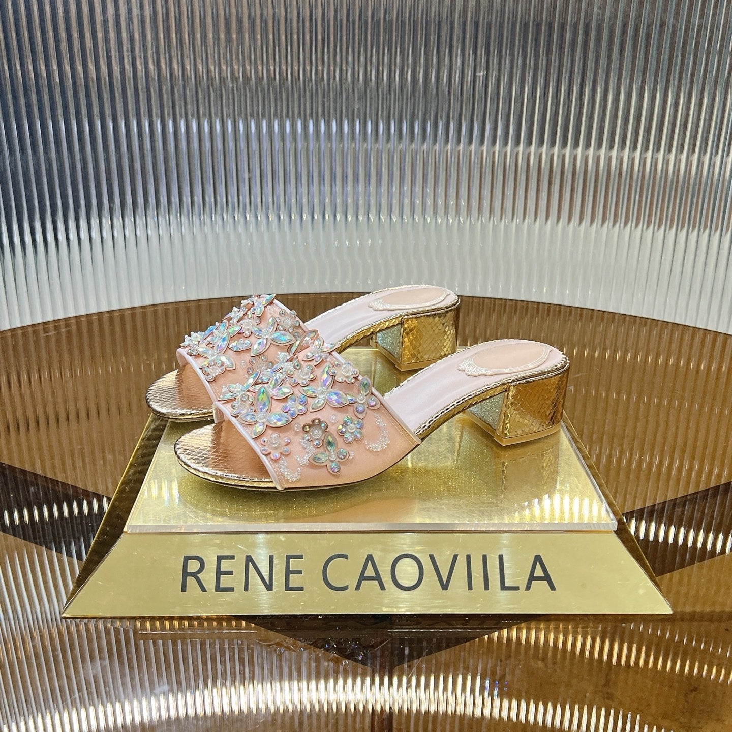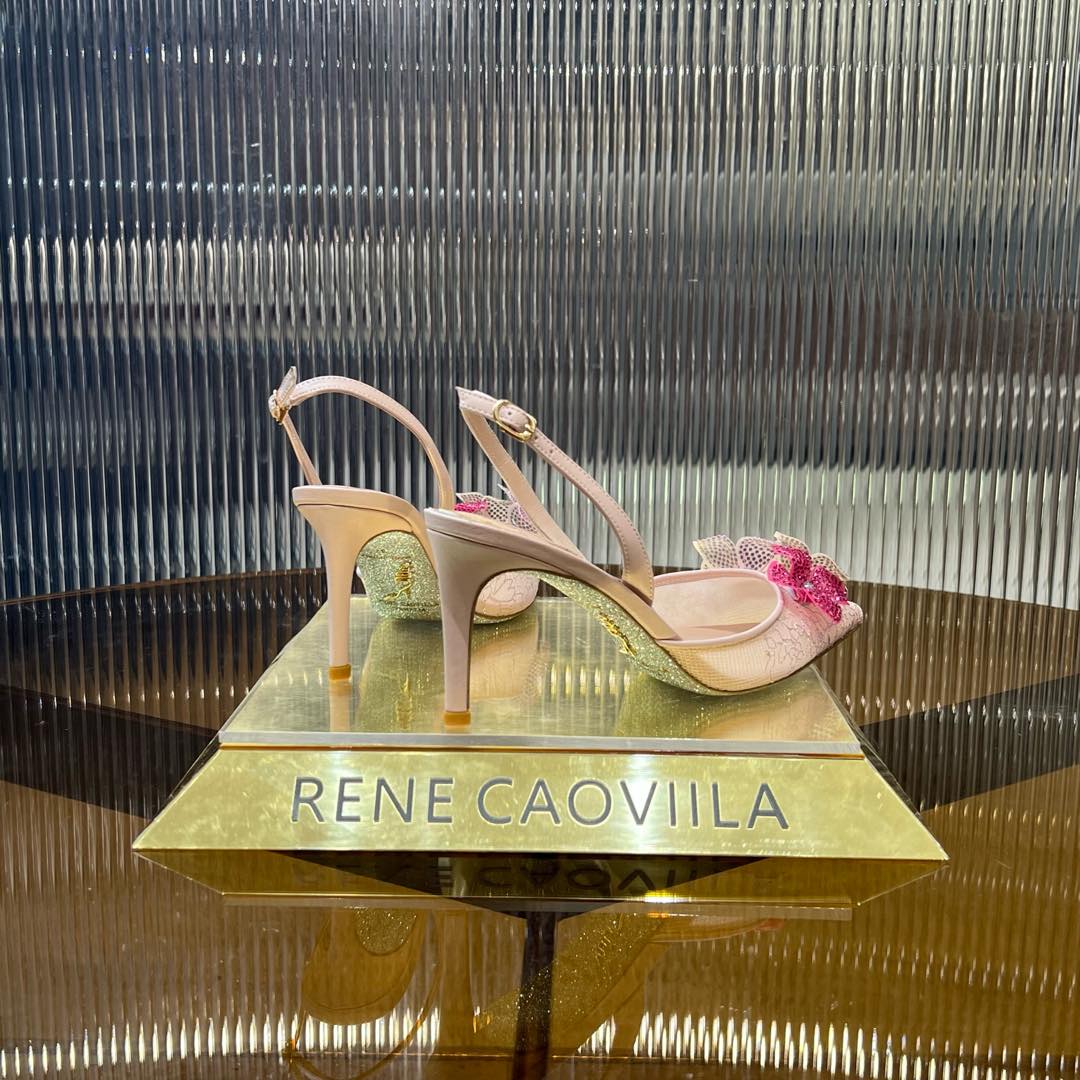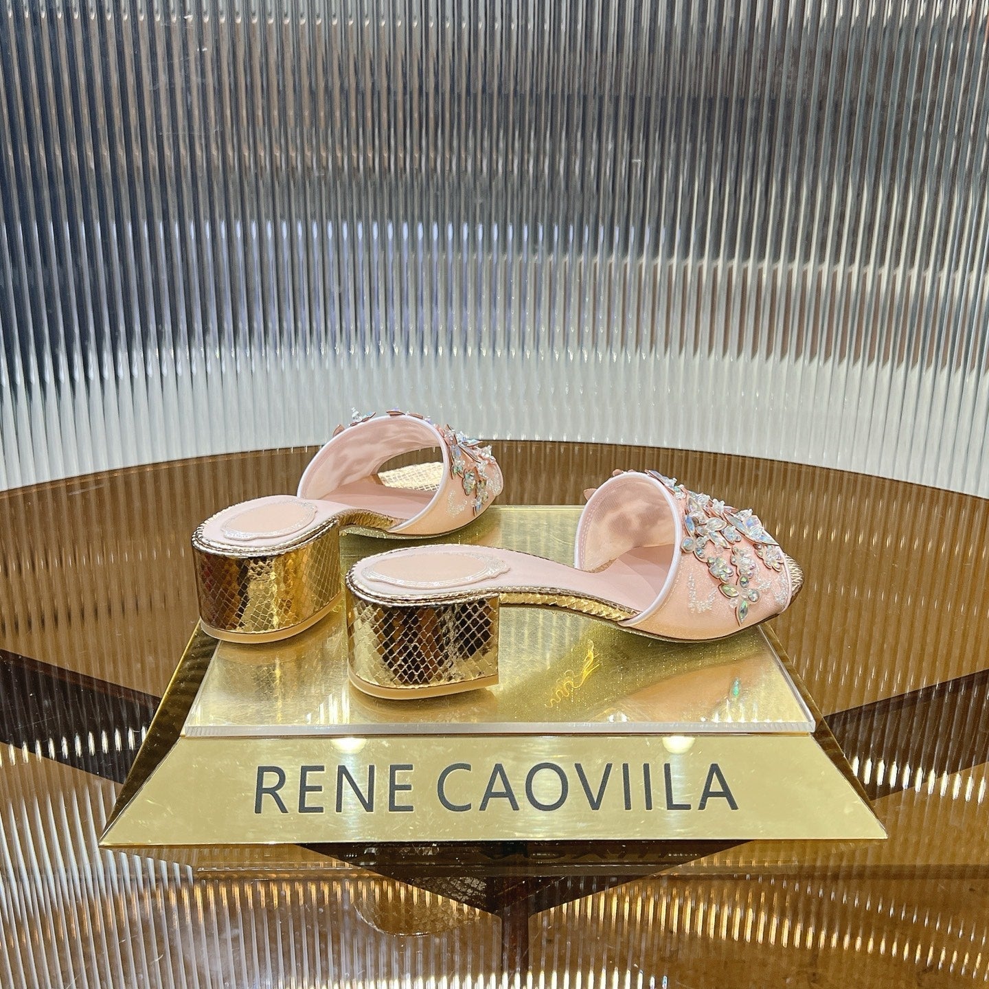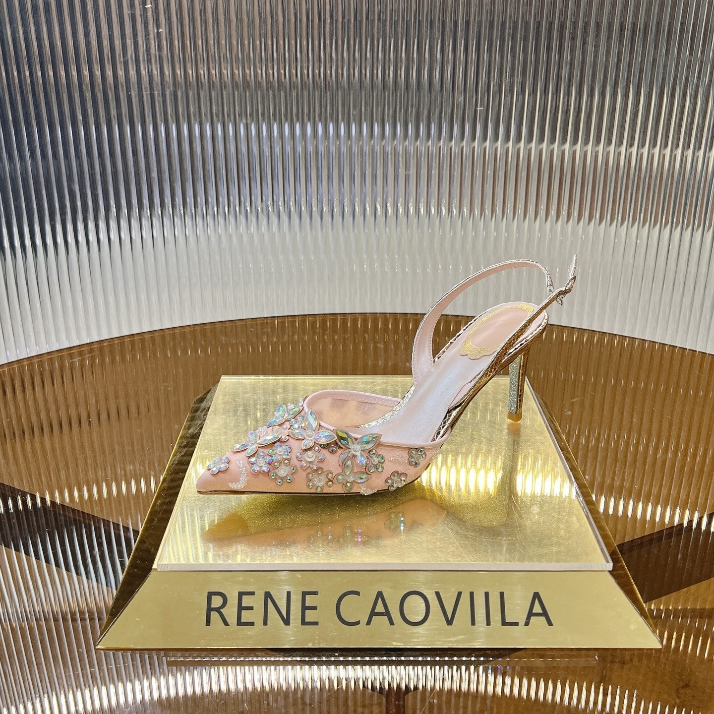 RC 25C Flower-Studded Diamond High-Heeled Sandals Pink Sheepskin 174913