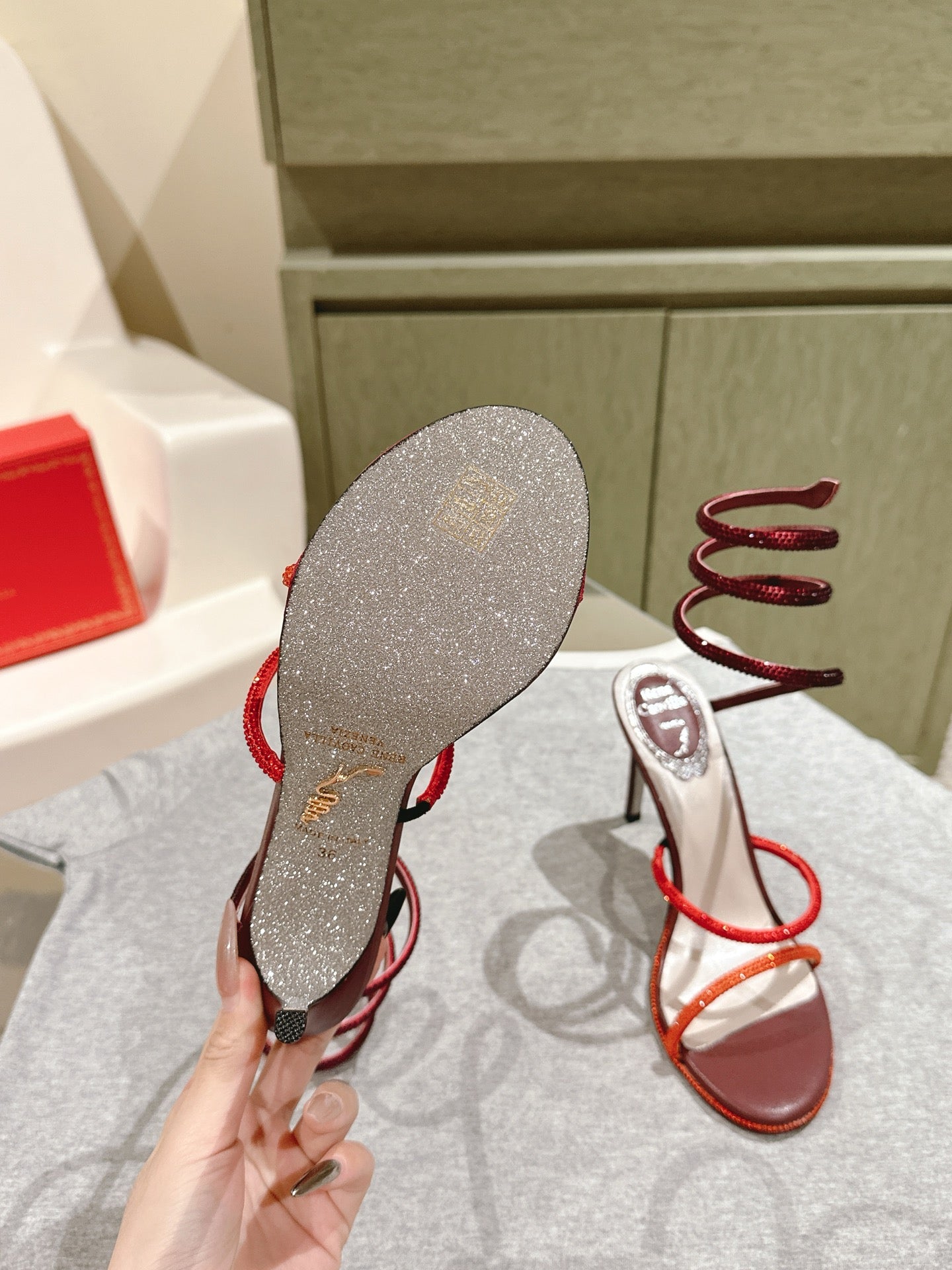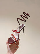 RC 25 Snake-Shaped High-Heeled Sandals Dark Red Silk Rhinestones 268061