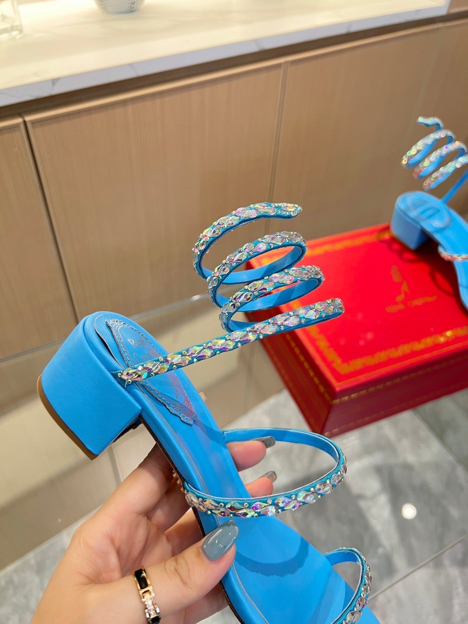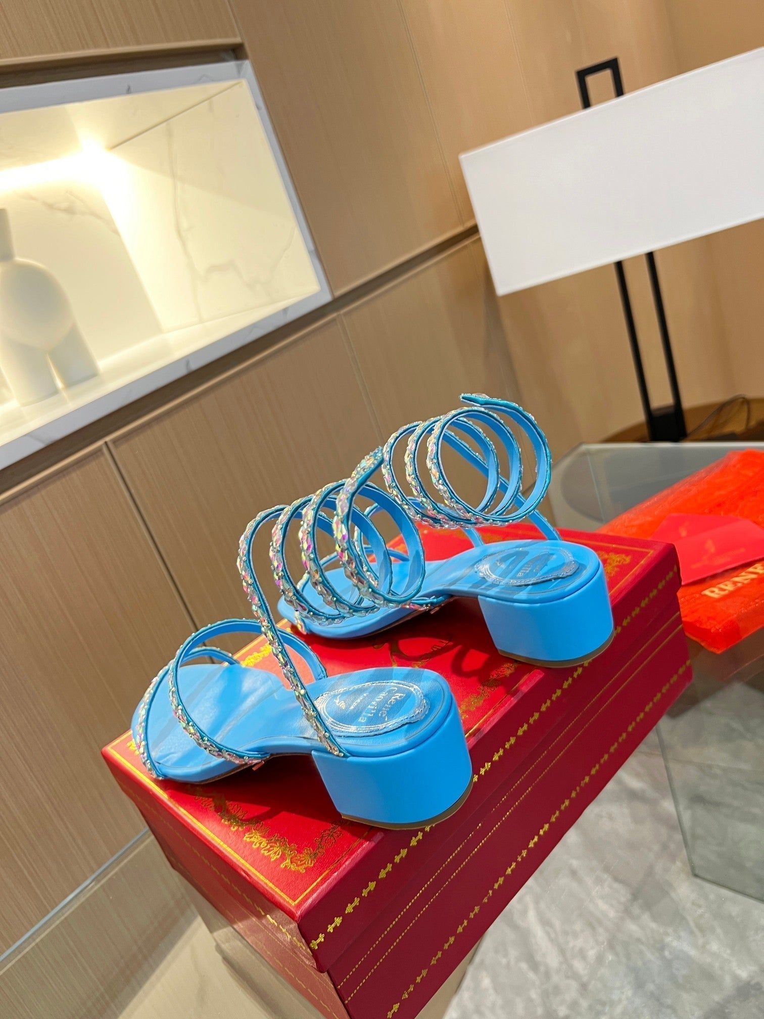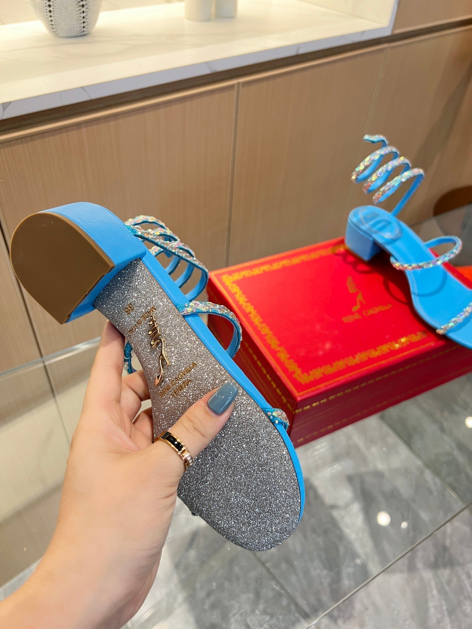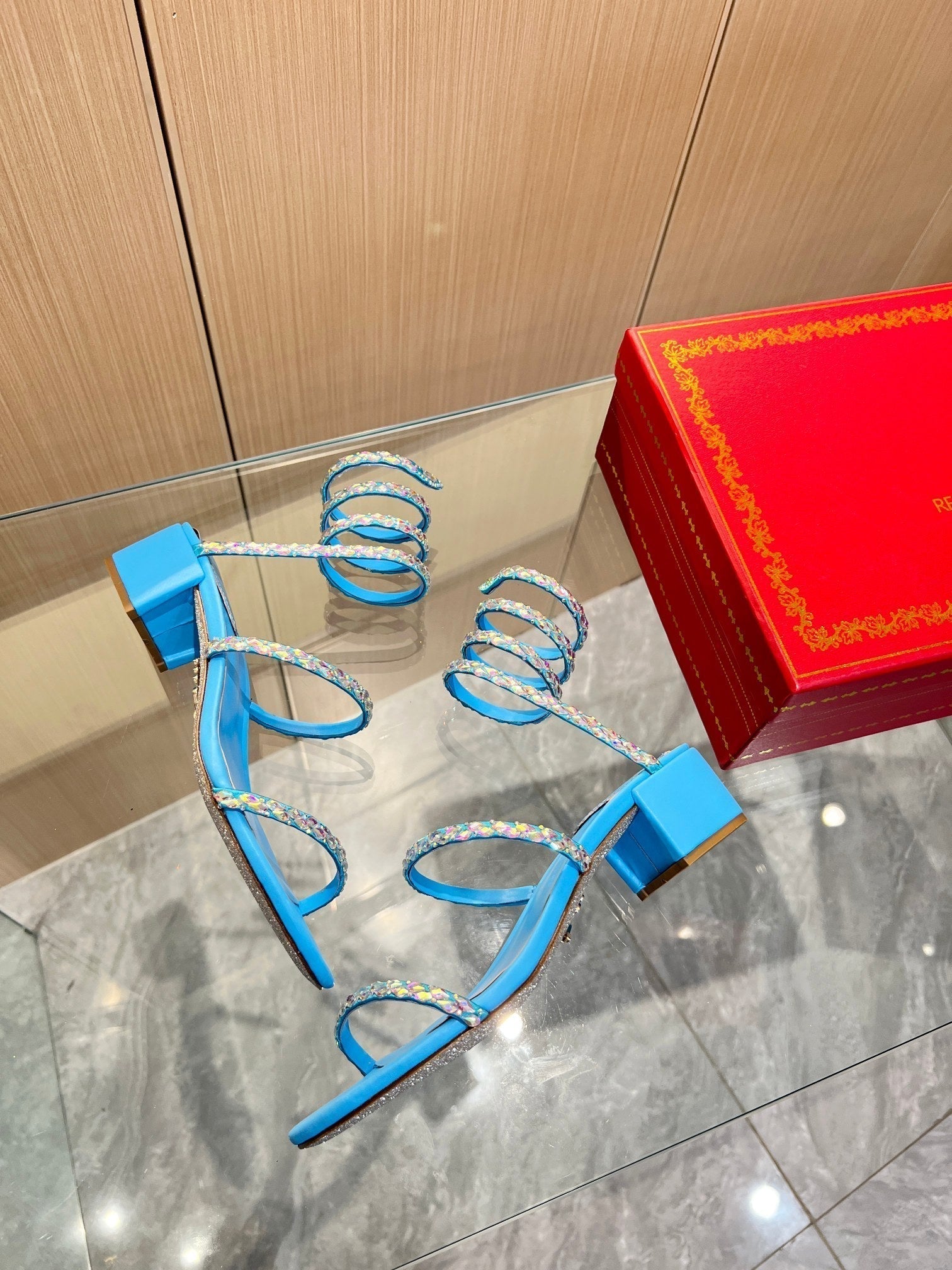 RC Diamond Sandals Blue Silk Creole Glass Diamond 341986
