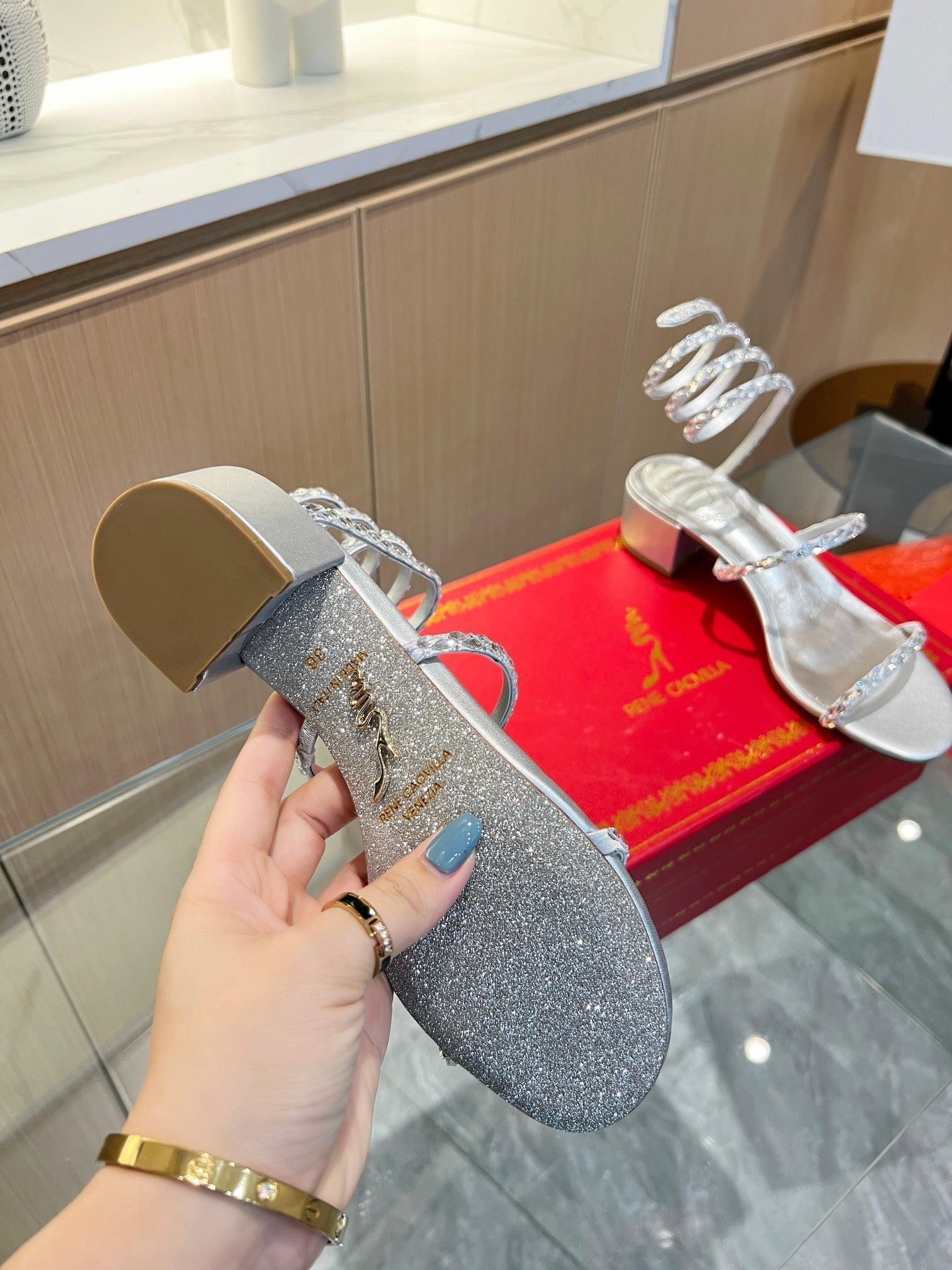 RC Diamond Sandals Sliver Silk Creole Glass Diamond 341984