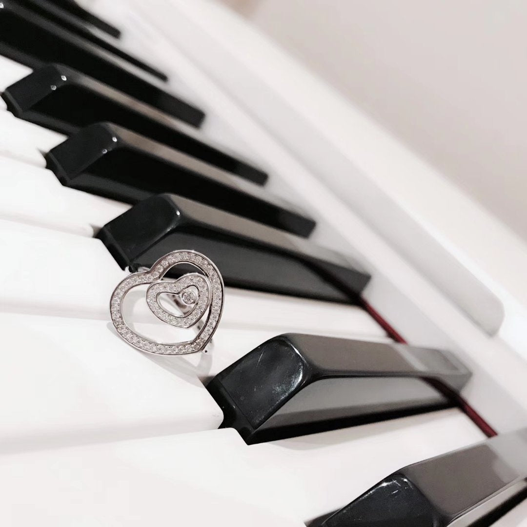 DOUBLE HEART SILVER DIAMOND RING