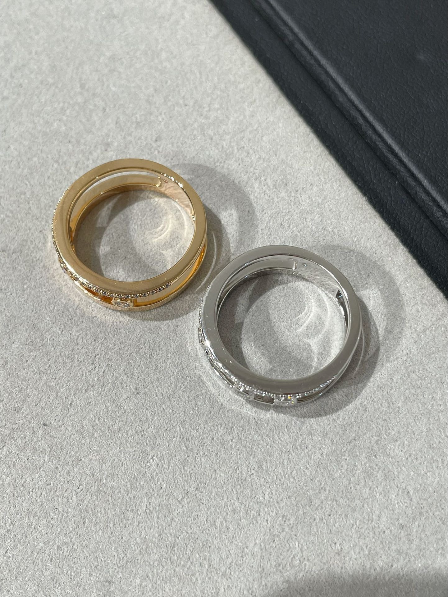 LOCK RING TOW-FINGER ROSE AND WHITE GOLD DIAMONDS