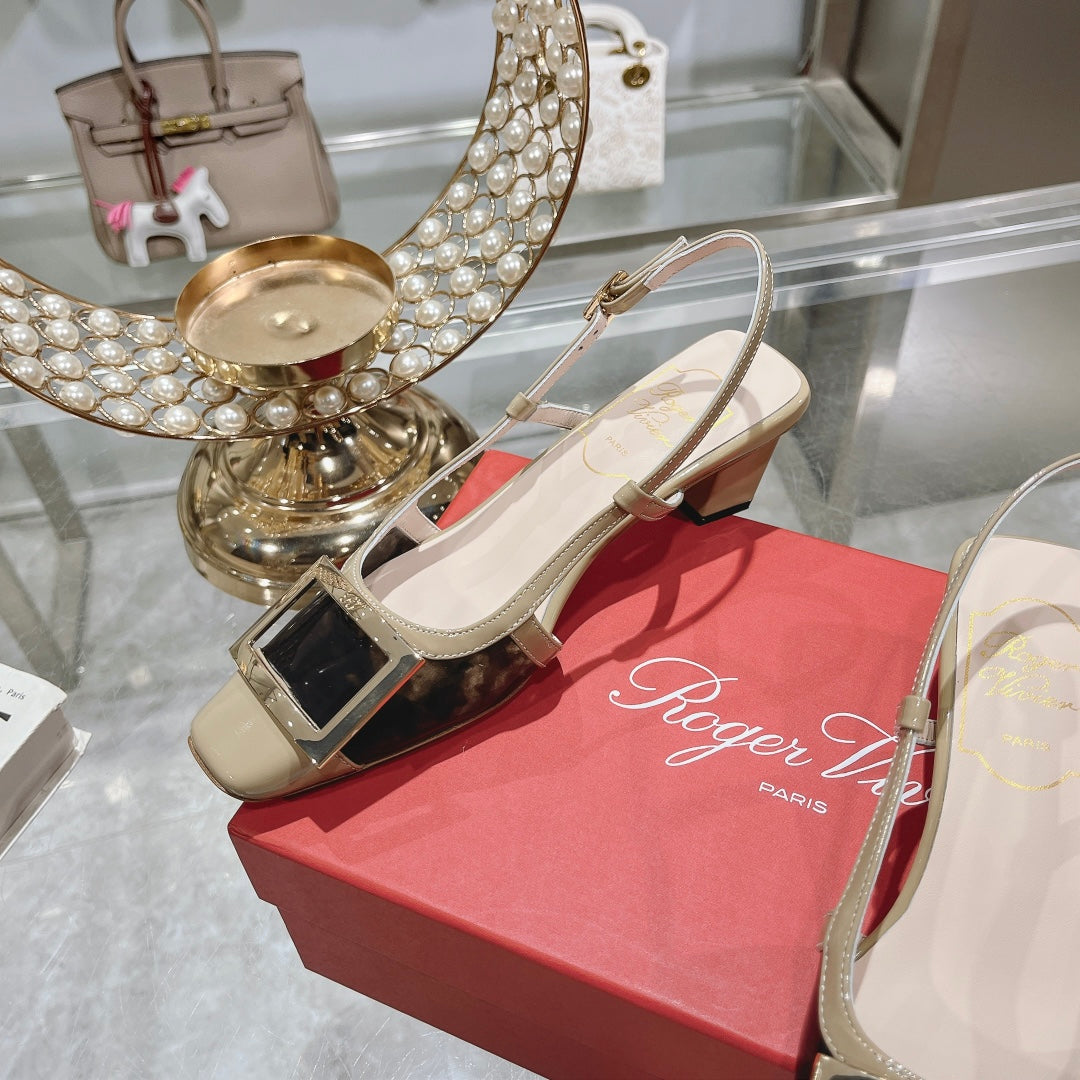 Belle Viv Metal Buckle Slingback Pumps 45 Camel Patent Leather