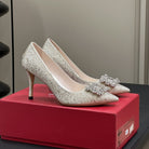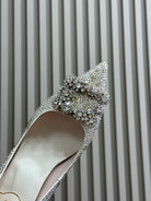 Flower Strass Buckle Pump 85 Crystal White Leather