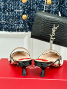 Mary Jane Virgule Mules 55 Balck White Patent Leather