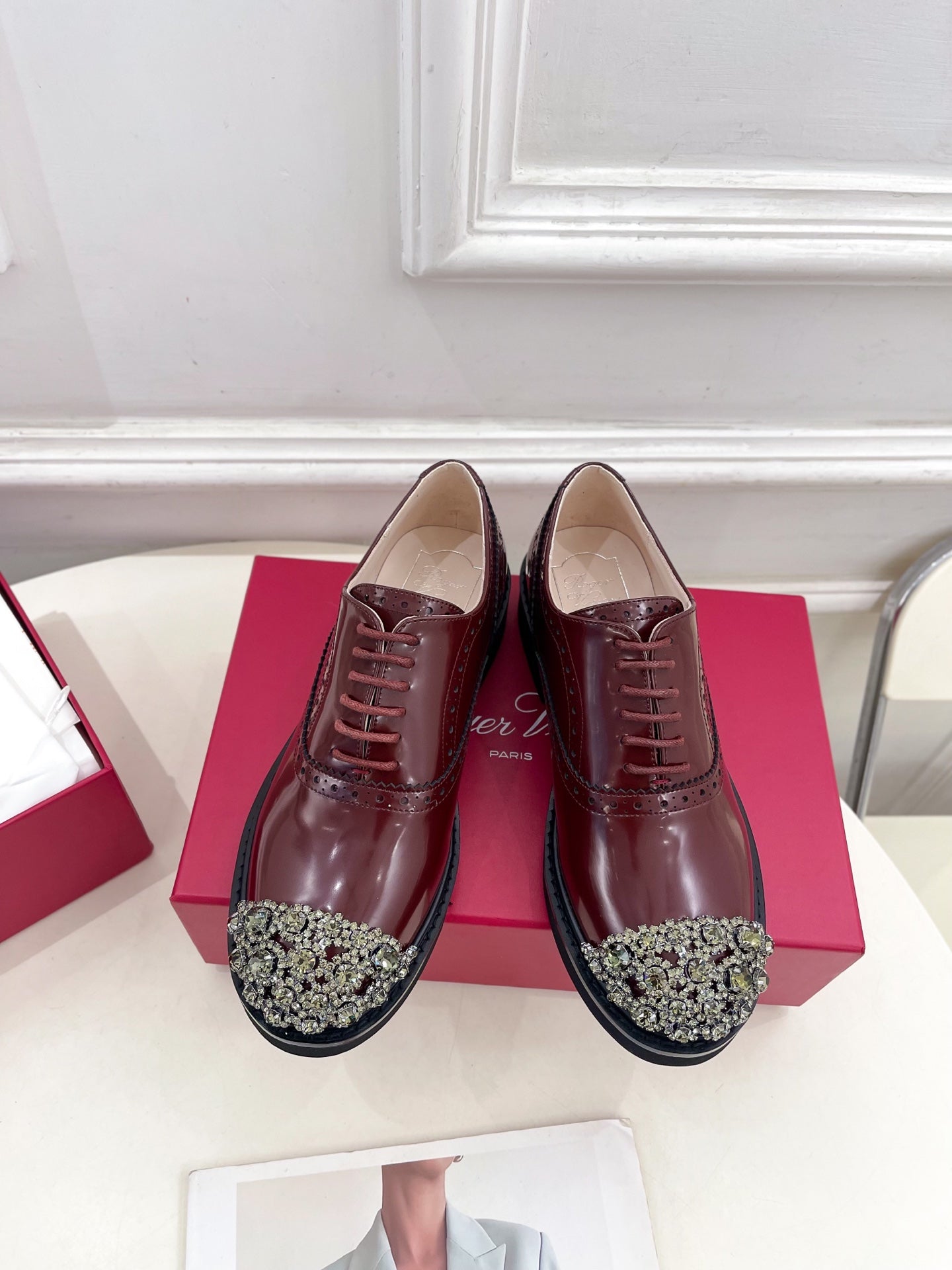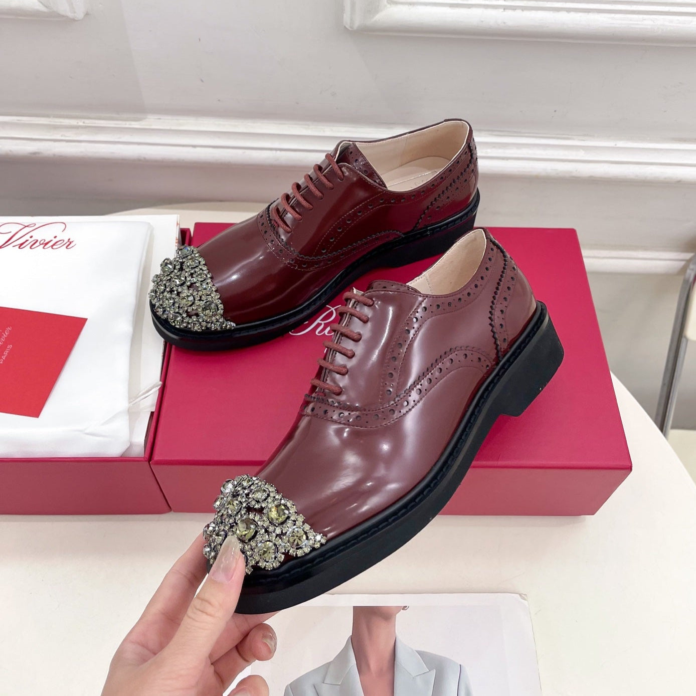 Viv 25 Baroque Rhinestone Derby Loafer Brown Cowhide Leather 253582